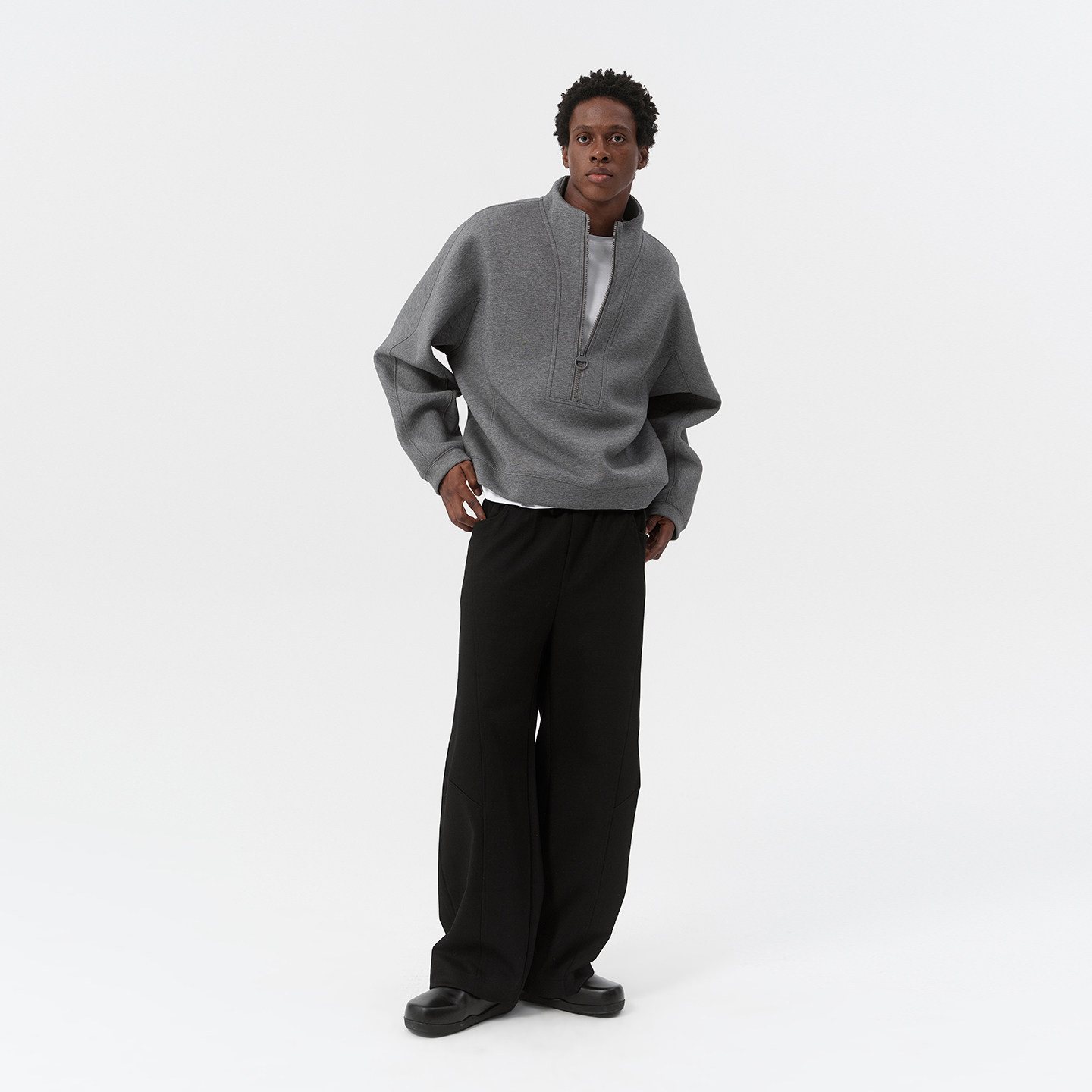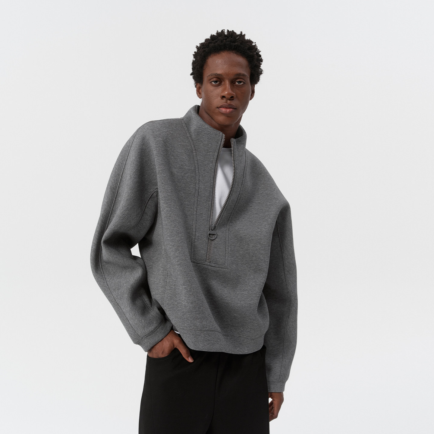 DUPU杜朴 棉感半门襟立领灰色卫衣 极简运动风套头卫衣