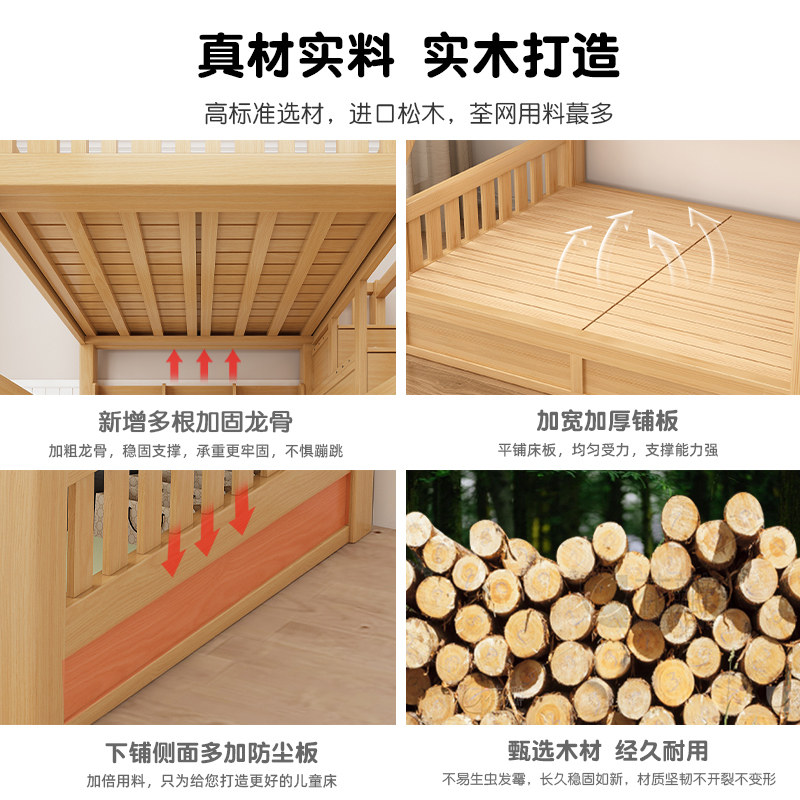 上下床双层床多功能高低床子母床两层全实木儿童床上下铺木床大人