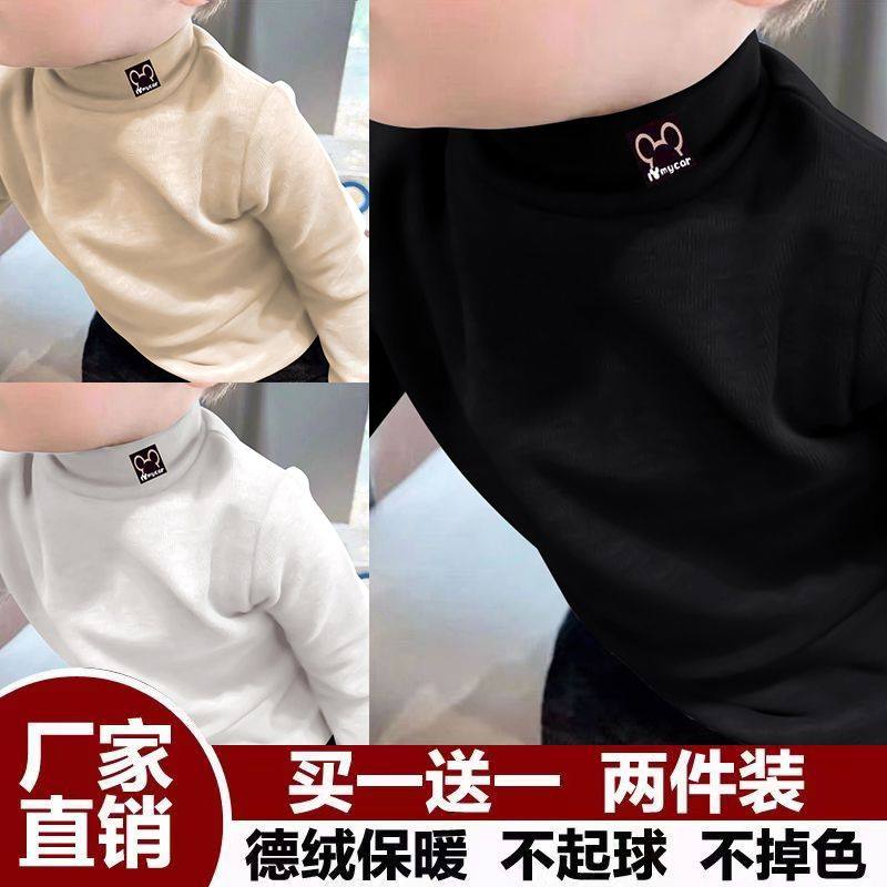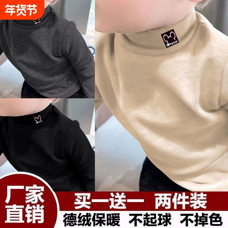 儿童德绒T恤打底衫2024秋冬季新款男童半高领中大童韩版保暖上衣