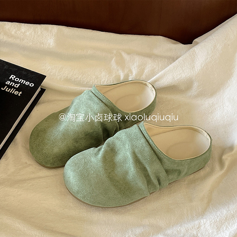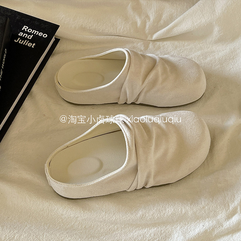 真皮包头穆勒鞋女半拖2025新款一脚蹬软面懒人平底拖鞋女夏外穿