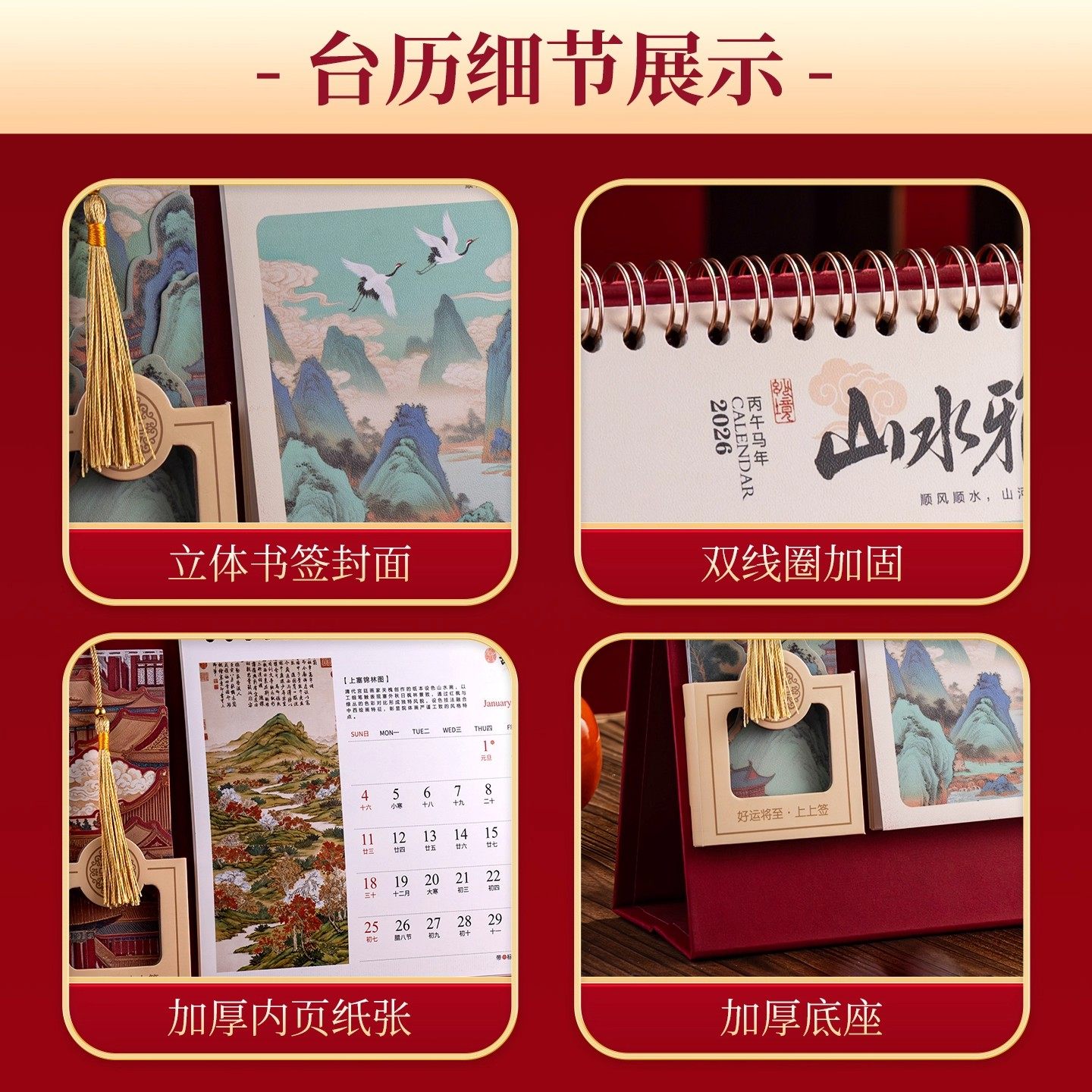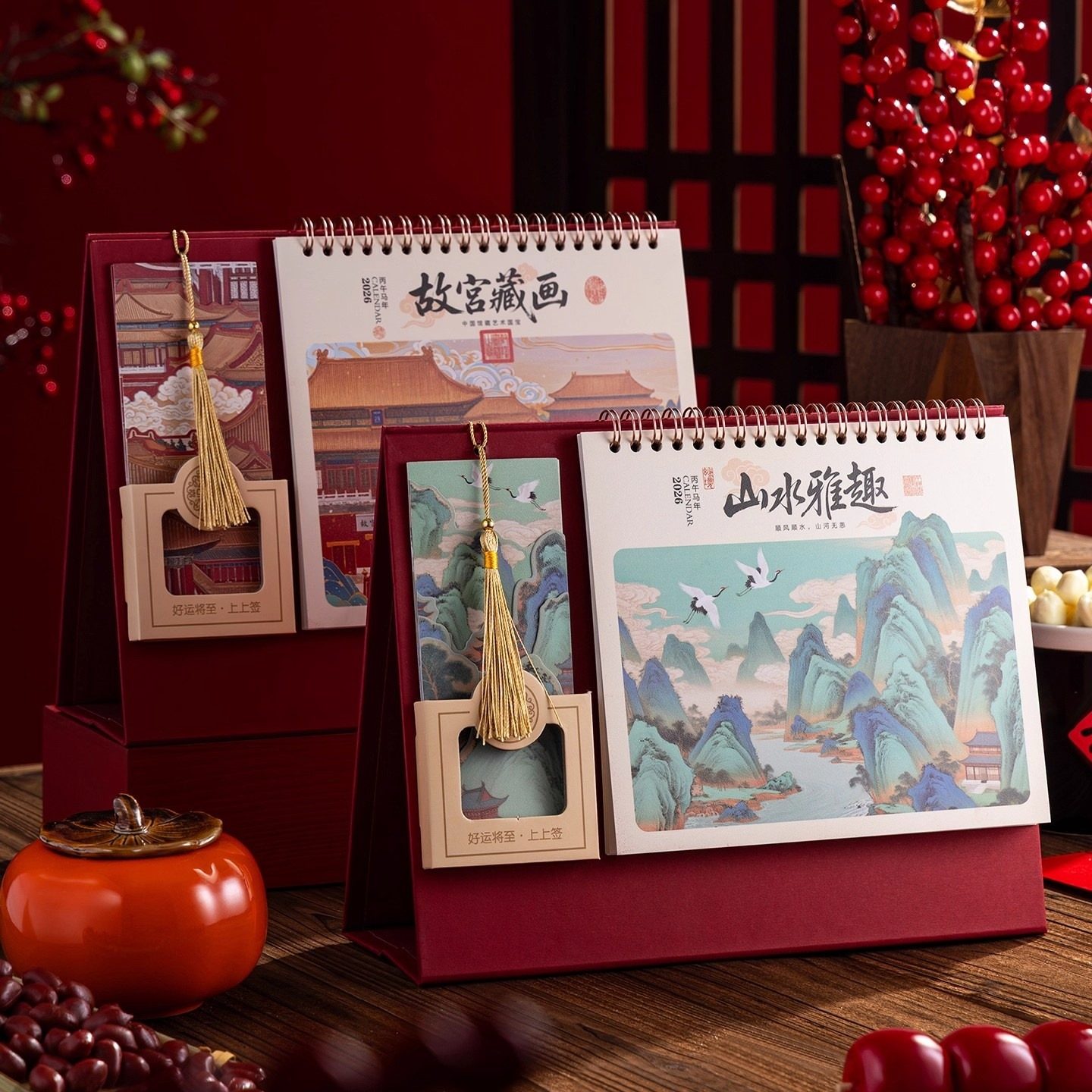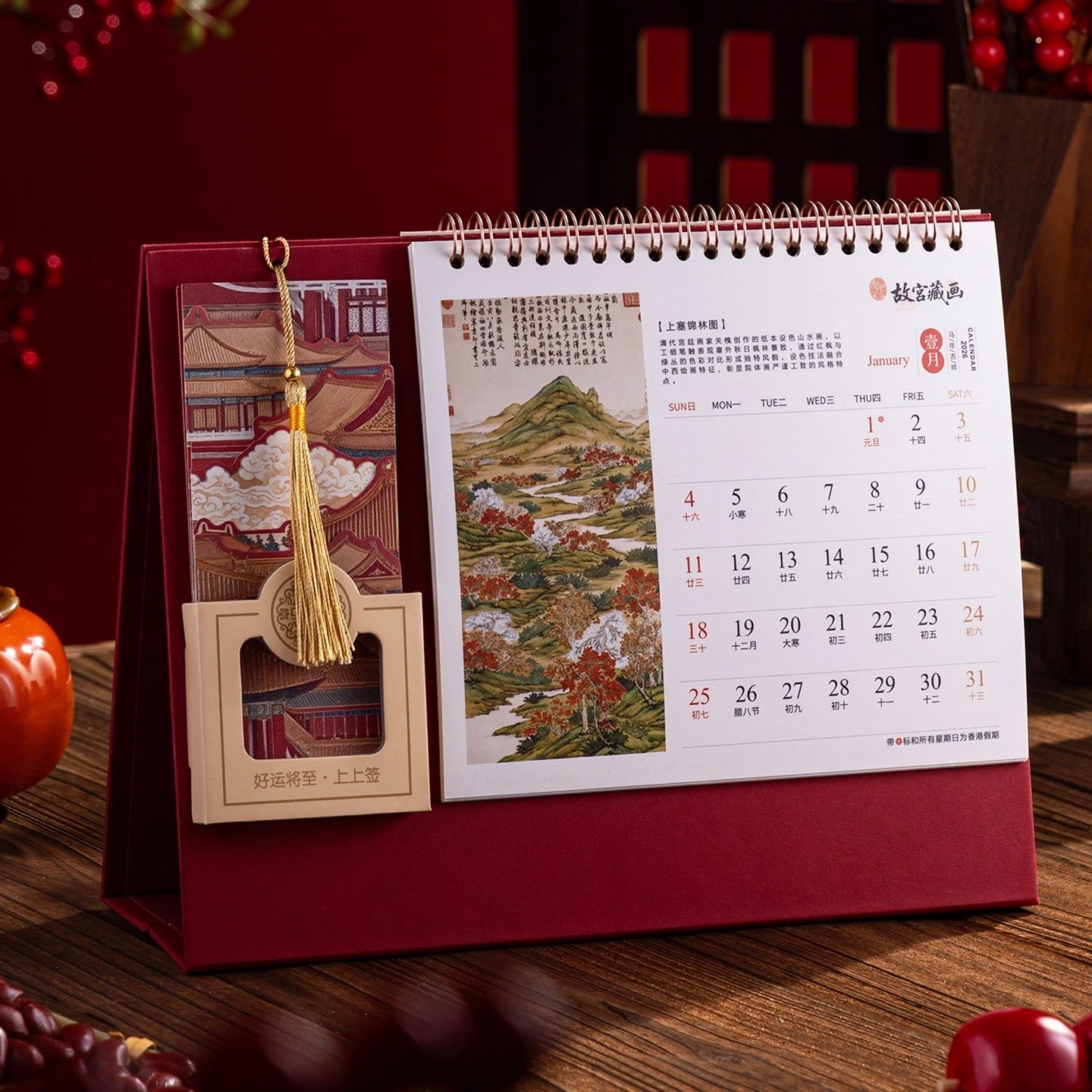 故宫日历书签台历2026年新款新年高档红色计划马年中国风桌面摆件大号横款高颜值