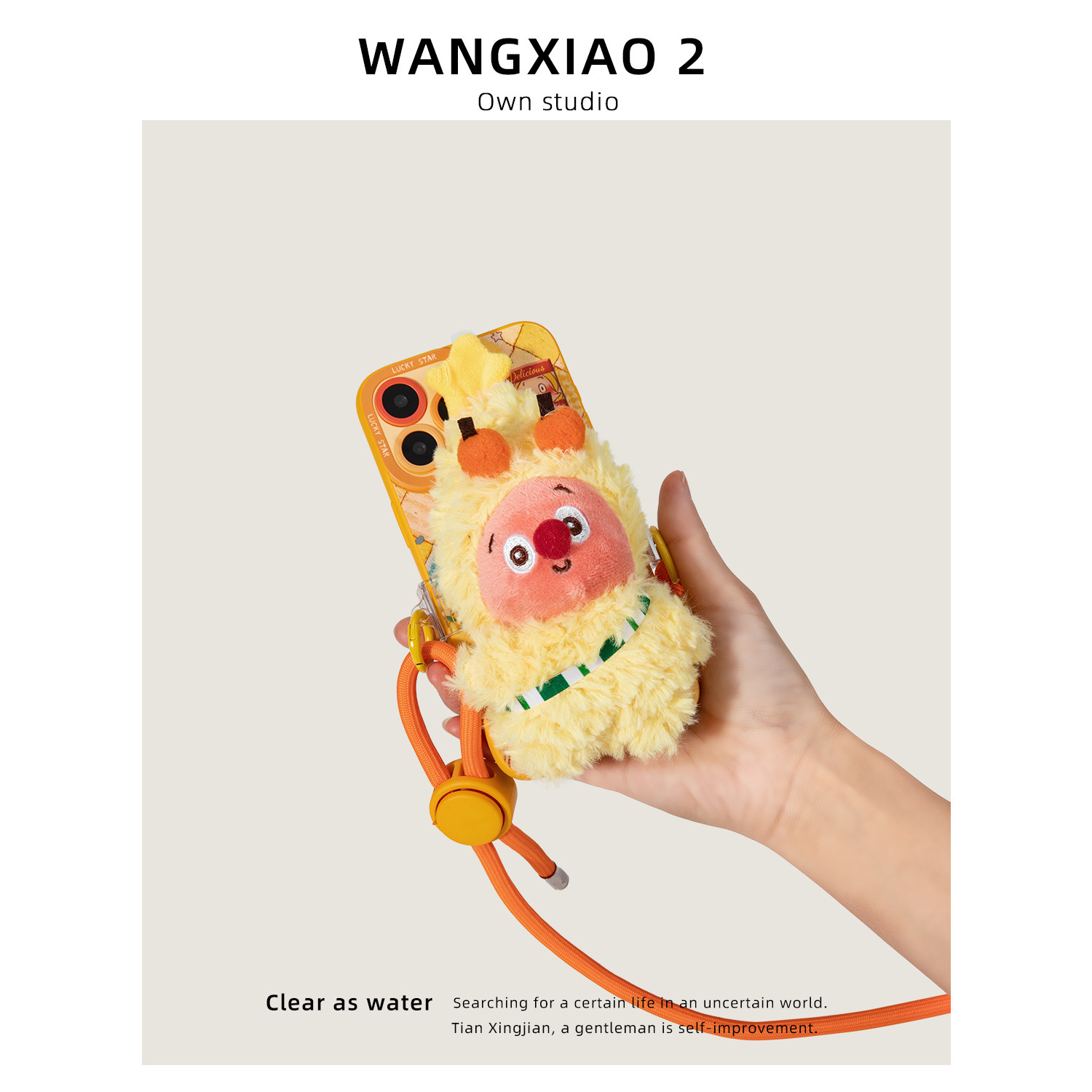 WANGXIAO 2可爱123!星星人手机背夹斜跨毛绒公仔手机链挂件挂饰品