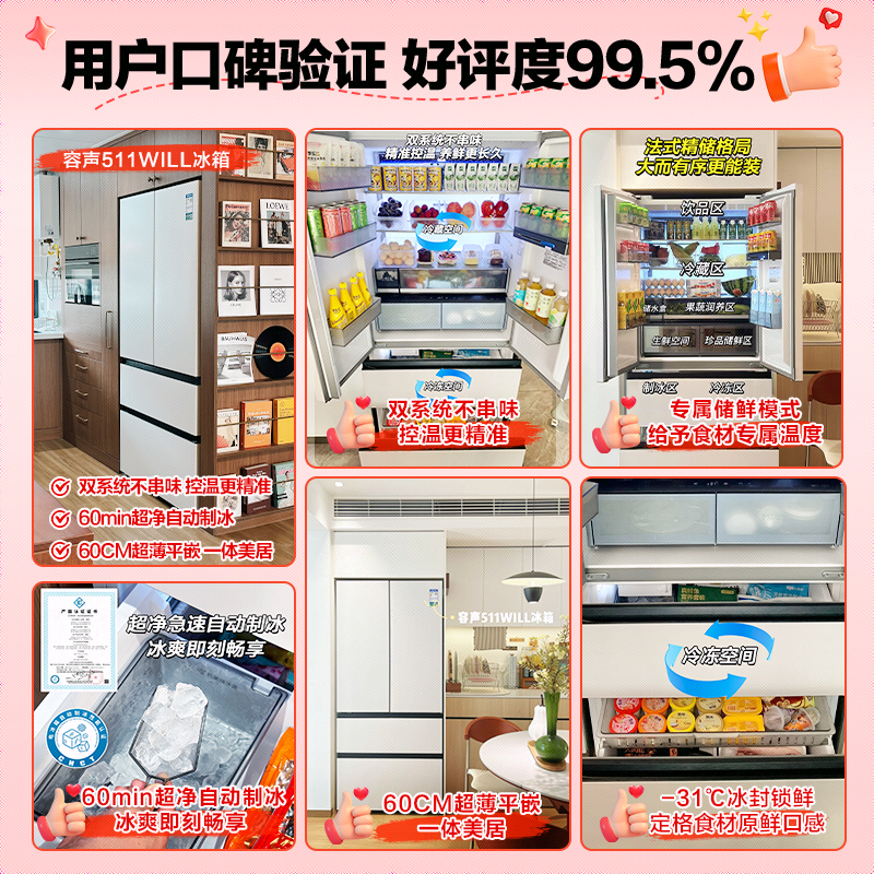 容声世界杯定制款511WILL养鲜双系统法式多门嵌入式制冰家用冰箱