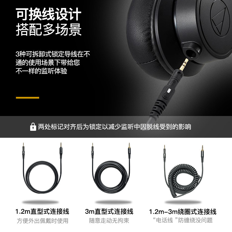 铁三角ATH-M60xa头戴式专业便携旗舰人声乐器监听录音室耳机
