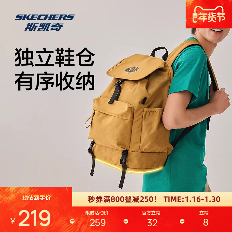 斯凯奇双肩包大容量简约旅行背包开学季百搭大学生运动休闲书包