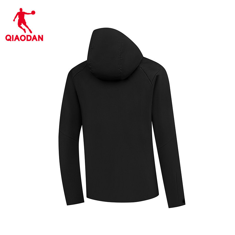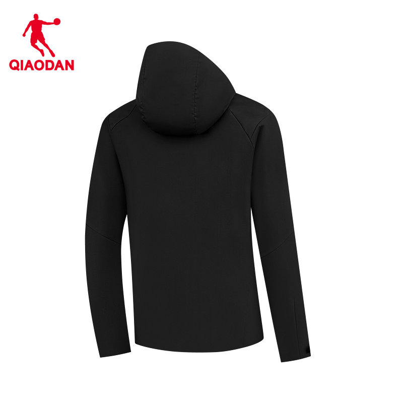特步防泼水夹克外套男春秋季户外风衣连帽黑色上衣防风运动训练服