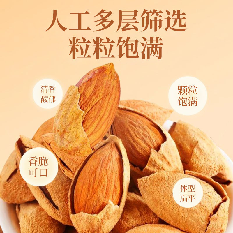 巴旦木500g袋装原味无添加手剥扁桃杏仁坚果新货奶香味官方旗舰店