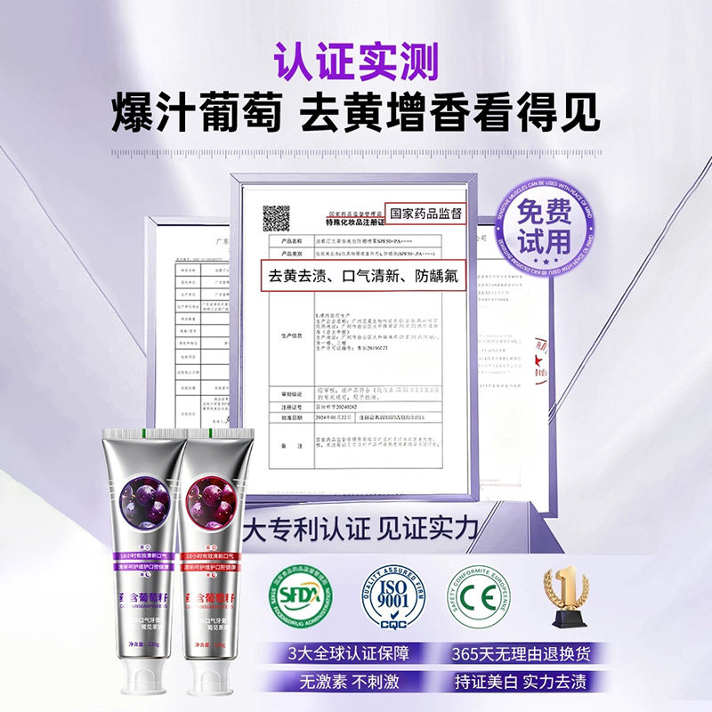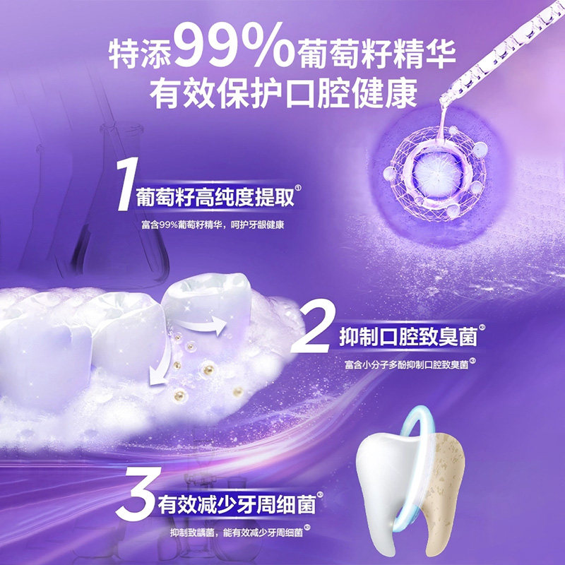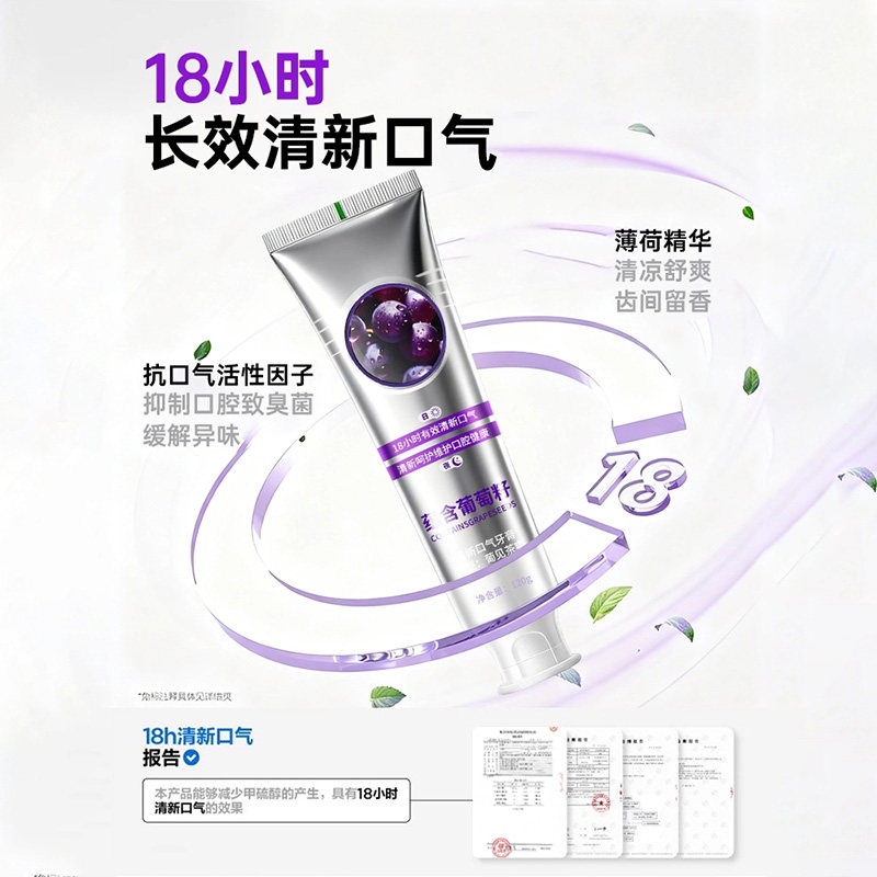葡萄籽牙膏去黄美白清新口气亮白去渍牙齿清洁旗舰店白牙口腔薄荷