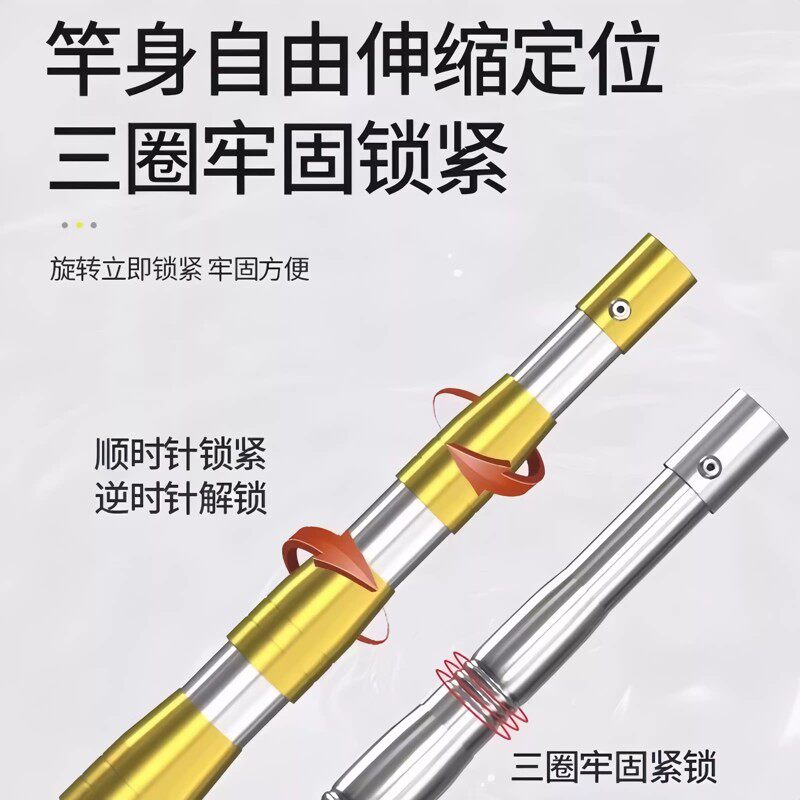 不锈钢伸缩杆带钩子镰刀割草刀钓鱼专用抄网竿加长杆6米裸竿摘果