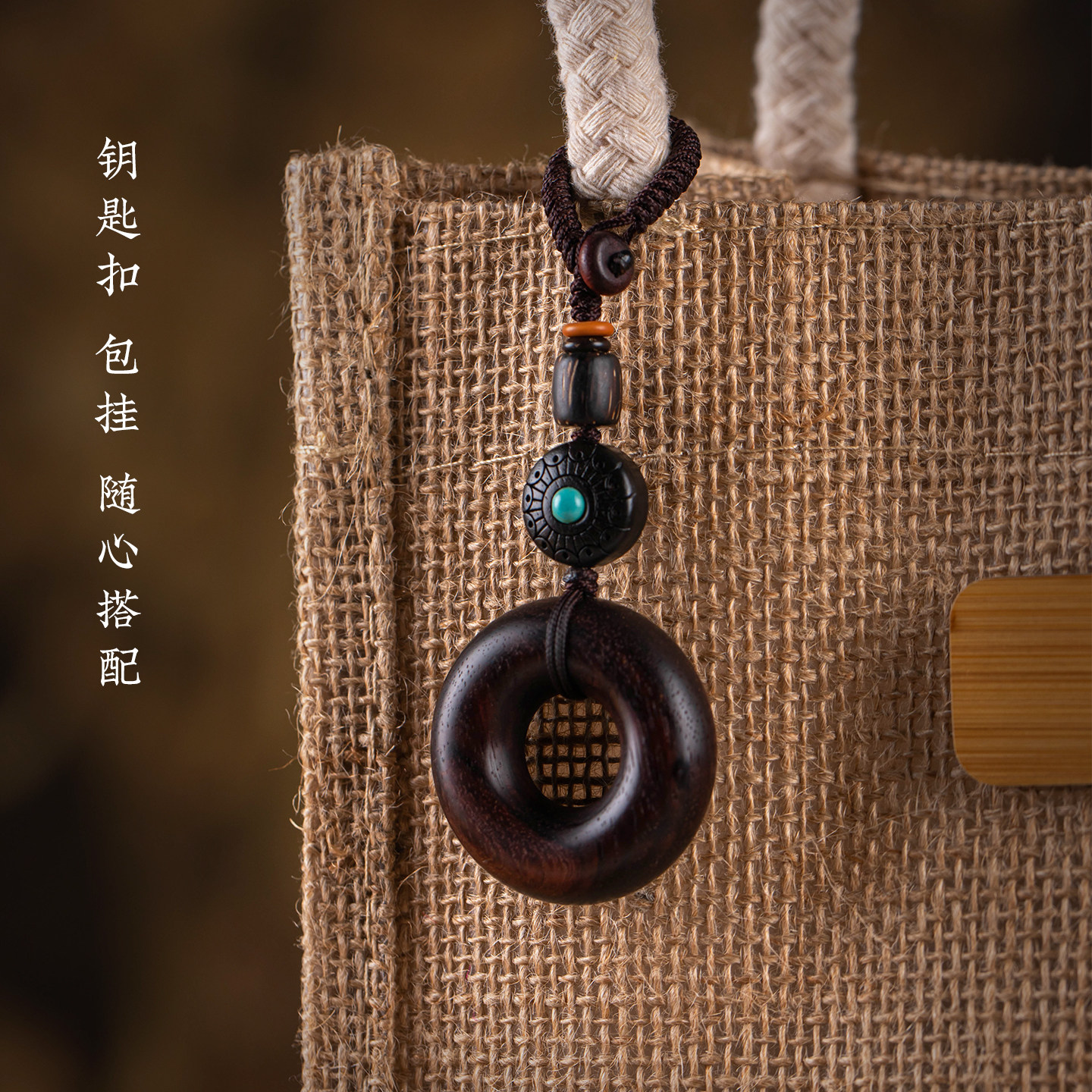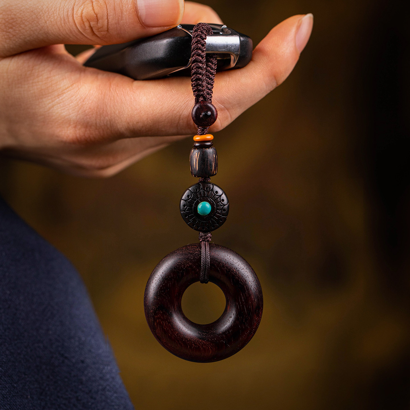 天然紫檀木平安扣汽车钥匙扣高档沉香木生肖钥匙挂件男士礼物新款