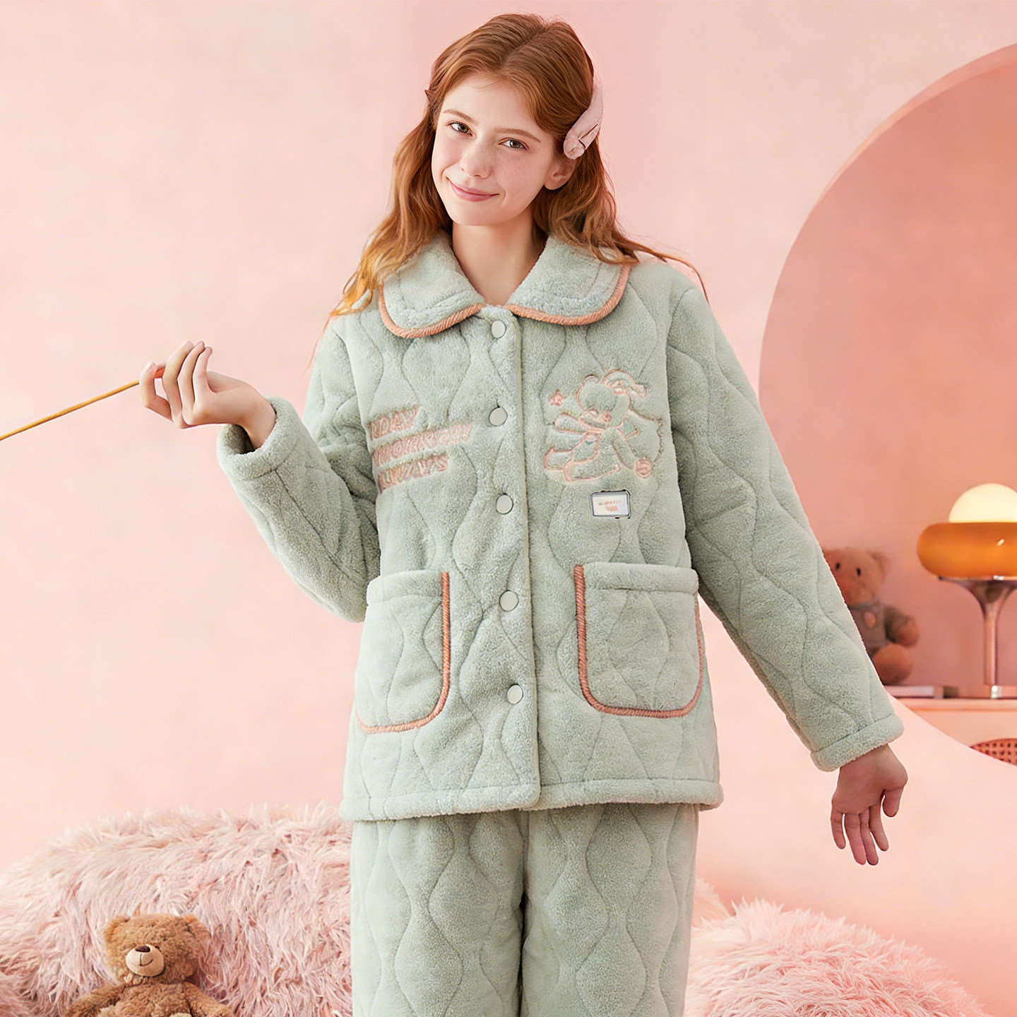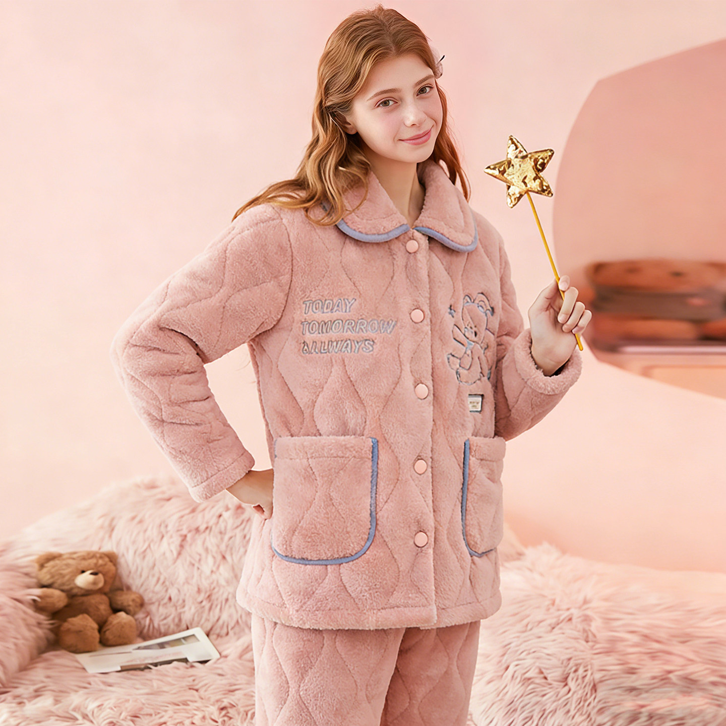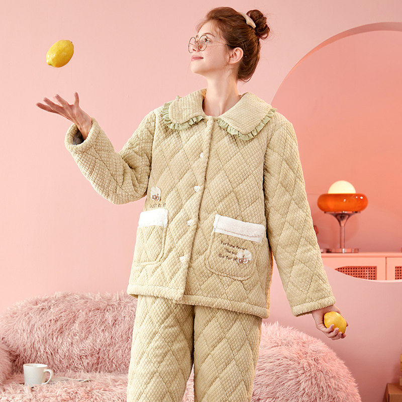芬腾睡衣女秋冬天珊瑚绒三层加厚法兰绒夹棉加绒保暖高级感家居服