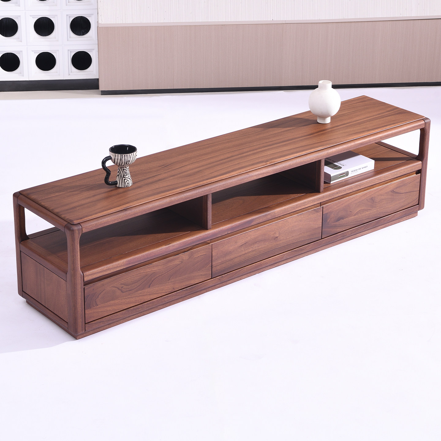 全实木电视机柜客厅家用现代简约落地边柜高矮组合收纳储物柜一体