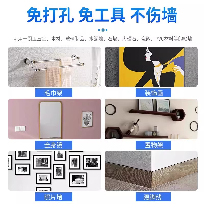 强力高粘免钉胶高粘度粘墙面金属墙壁镜子瓷砖踢脚线卫生间置物架贴墙专用防水家用胶多功能粘得牢免打孔胶水
