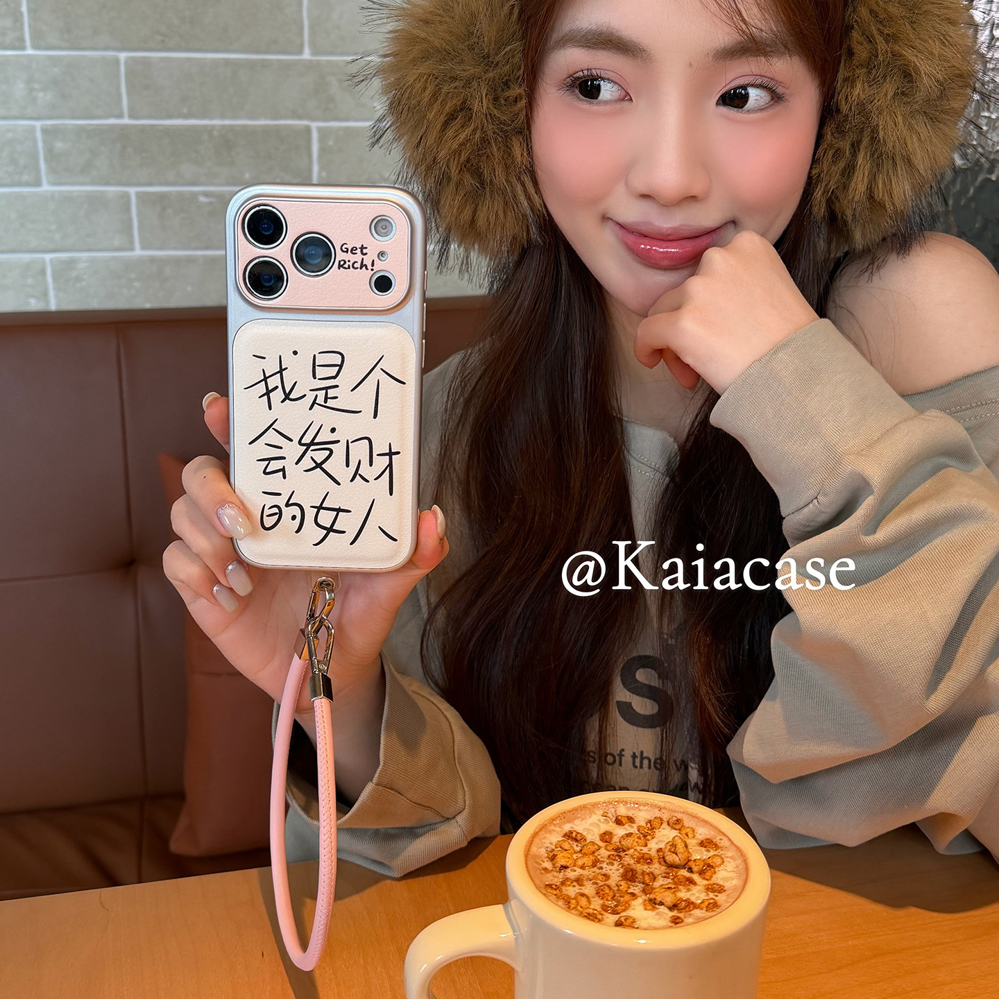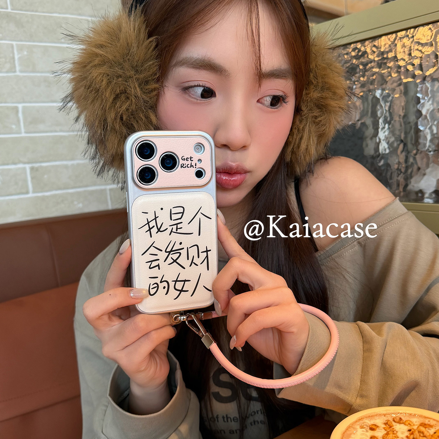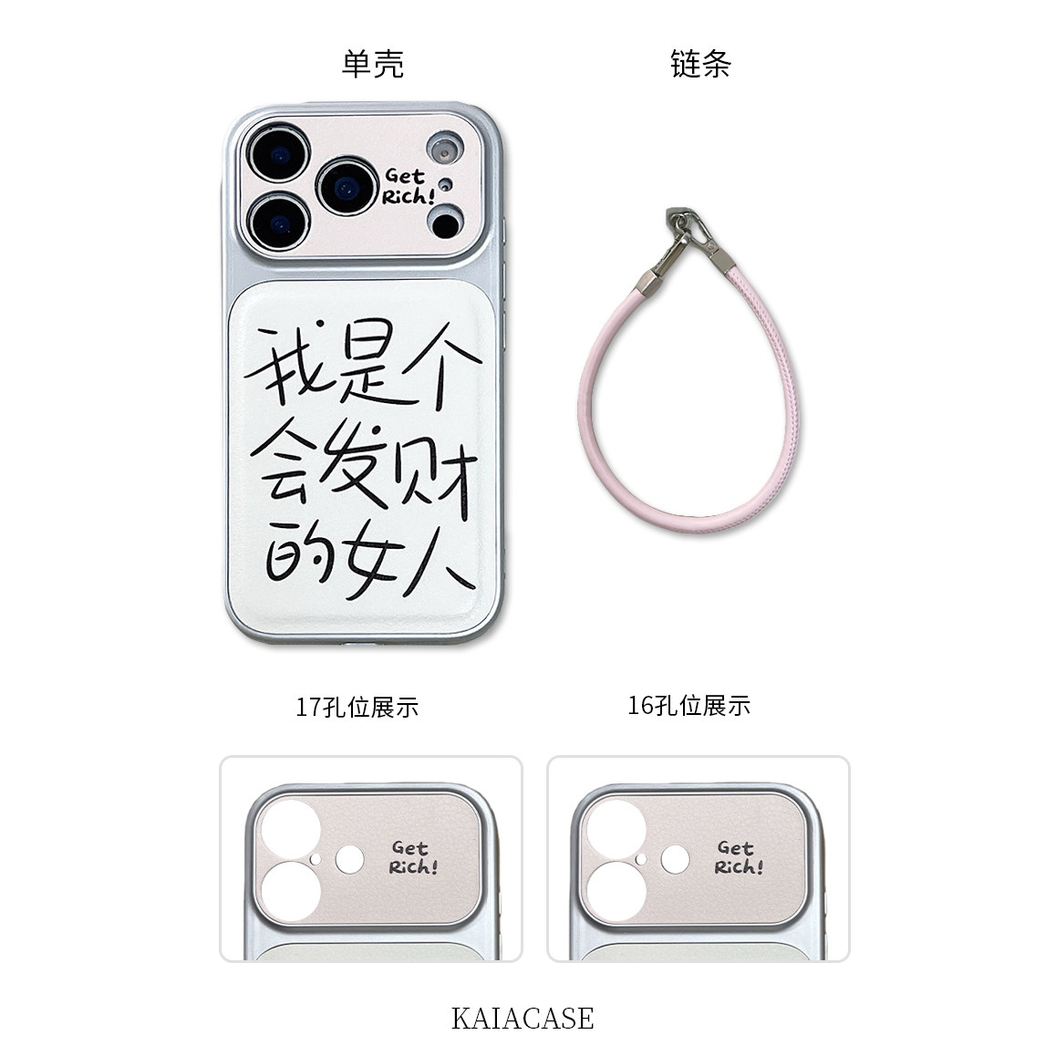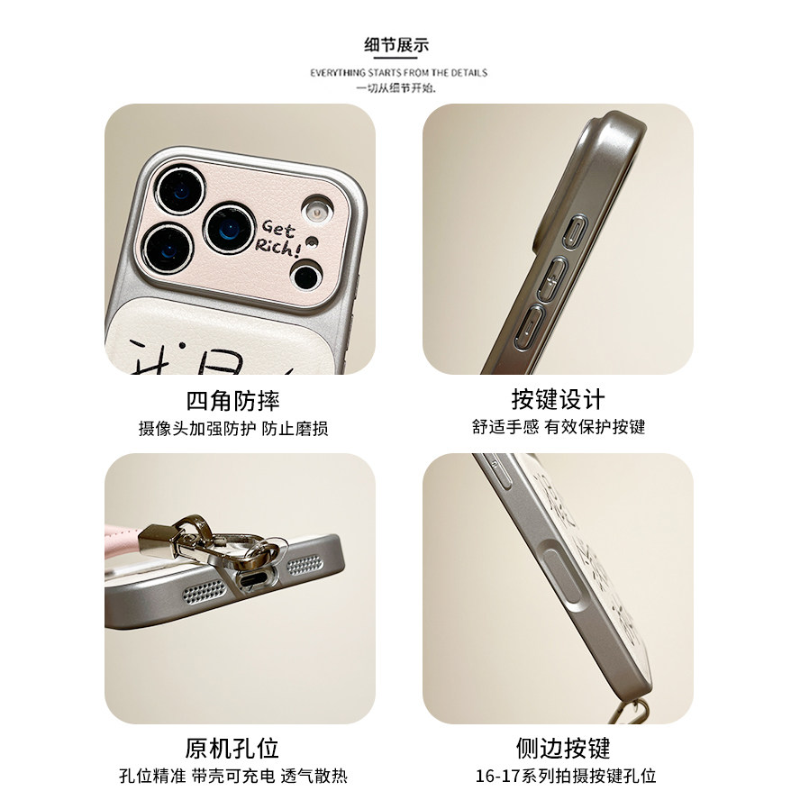 kaia 简约手绘文字会发财的女人适用苹果17promax手机壳iphone16pro新款17女14pro带挂绳15pro全包防摔手机套