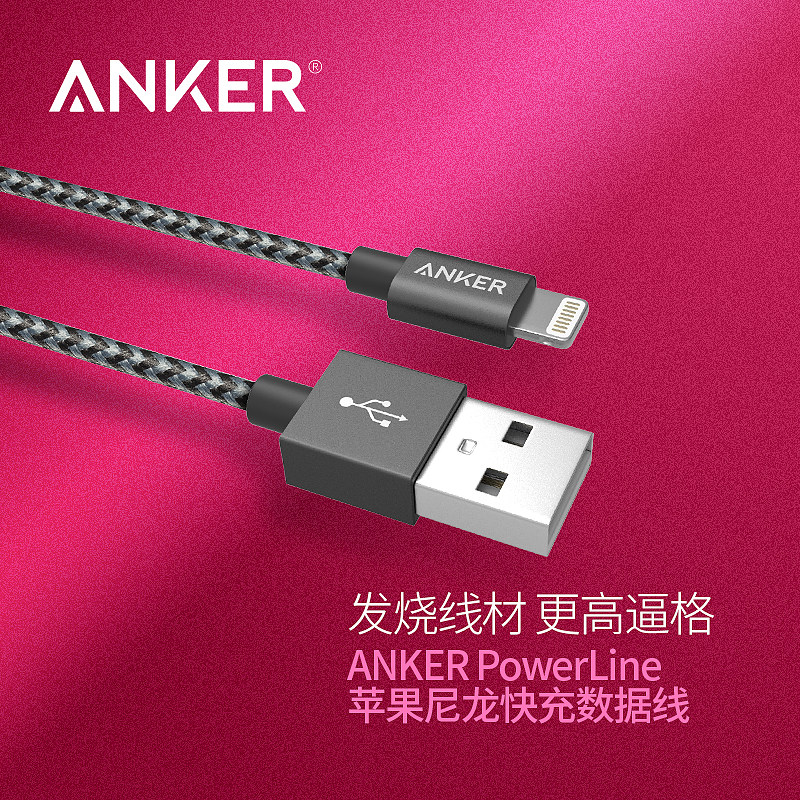 Anker适用于苹果iphone12 pro max USB加长手机数据线充电线MFi认证ipad刷机线尼龙线编织线
