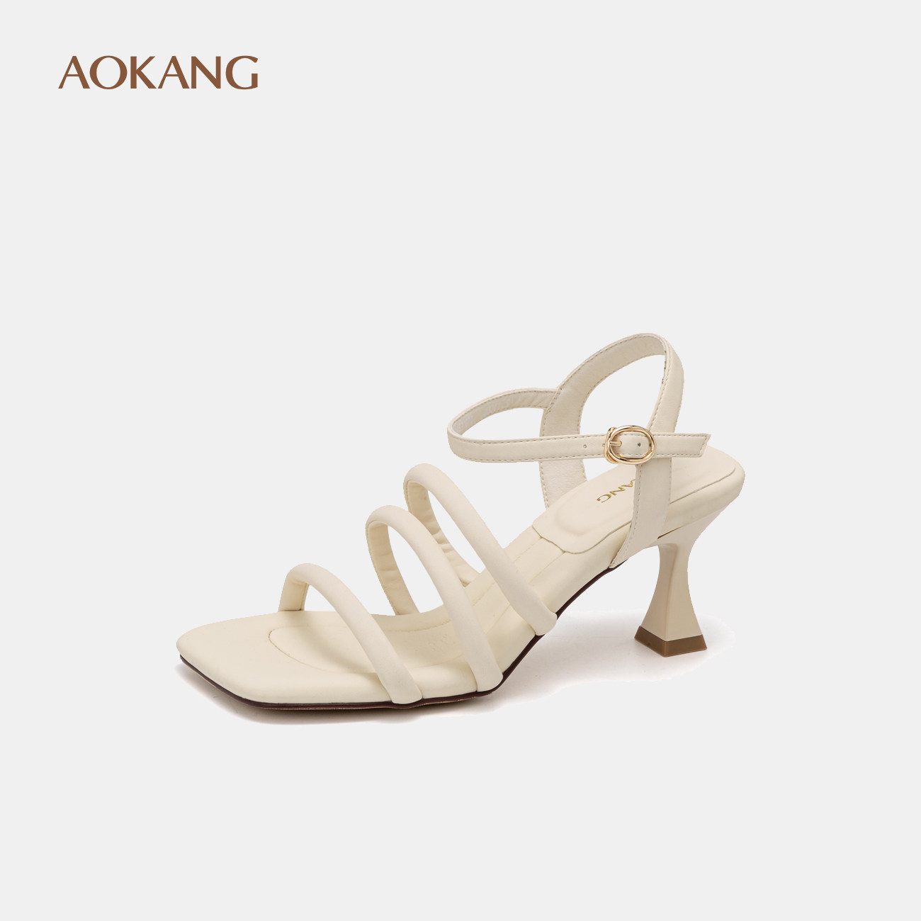 奥康女鞋 夏季法式甜美一字带细跟女士凉鞋方头坡跟高跟鞋女