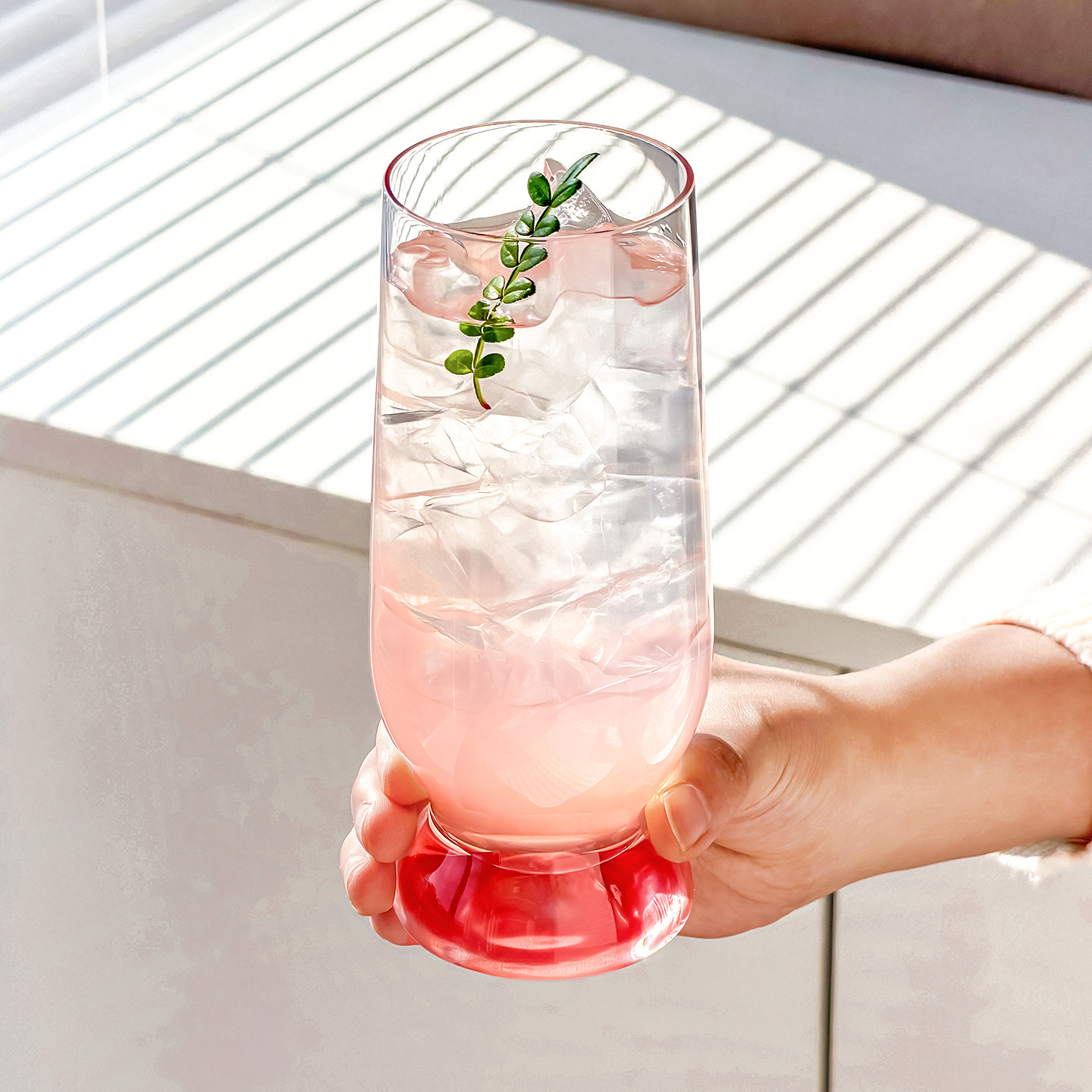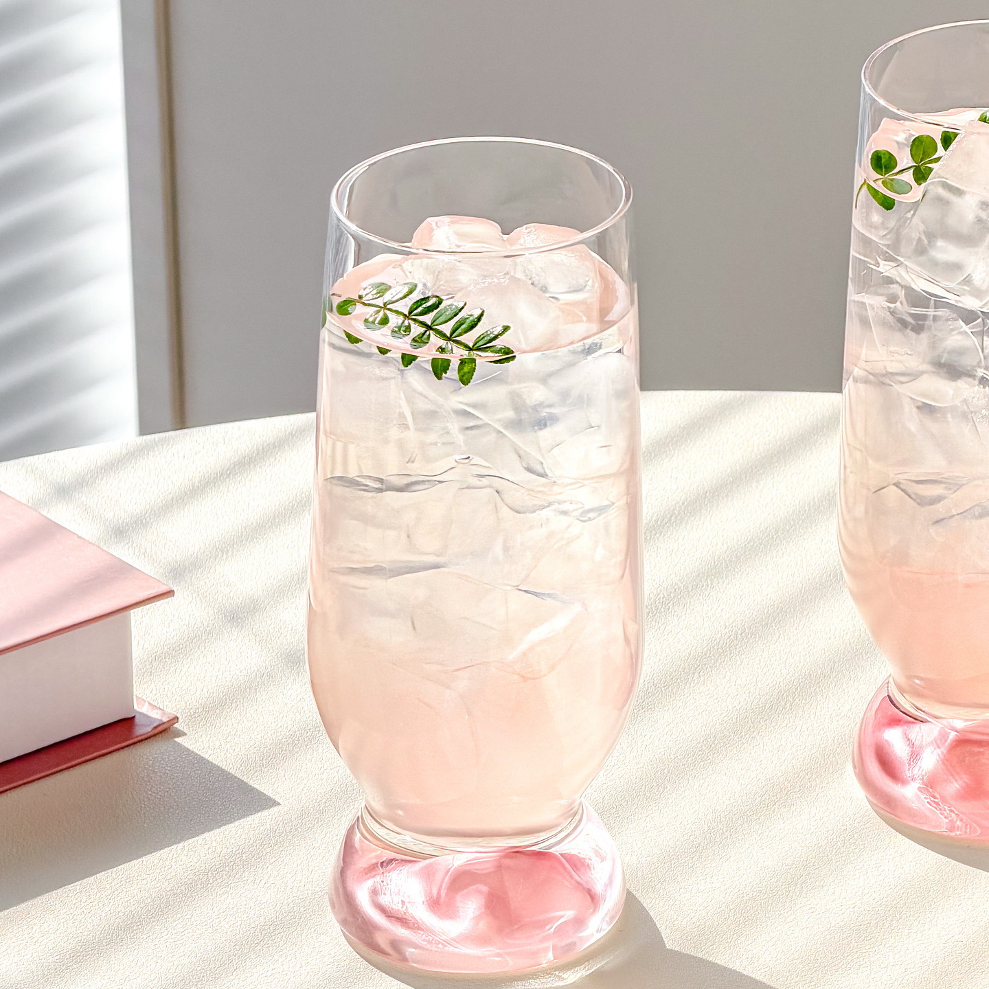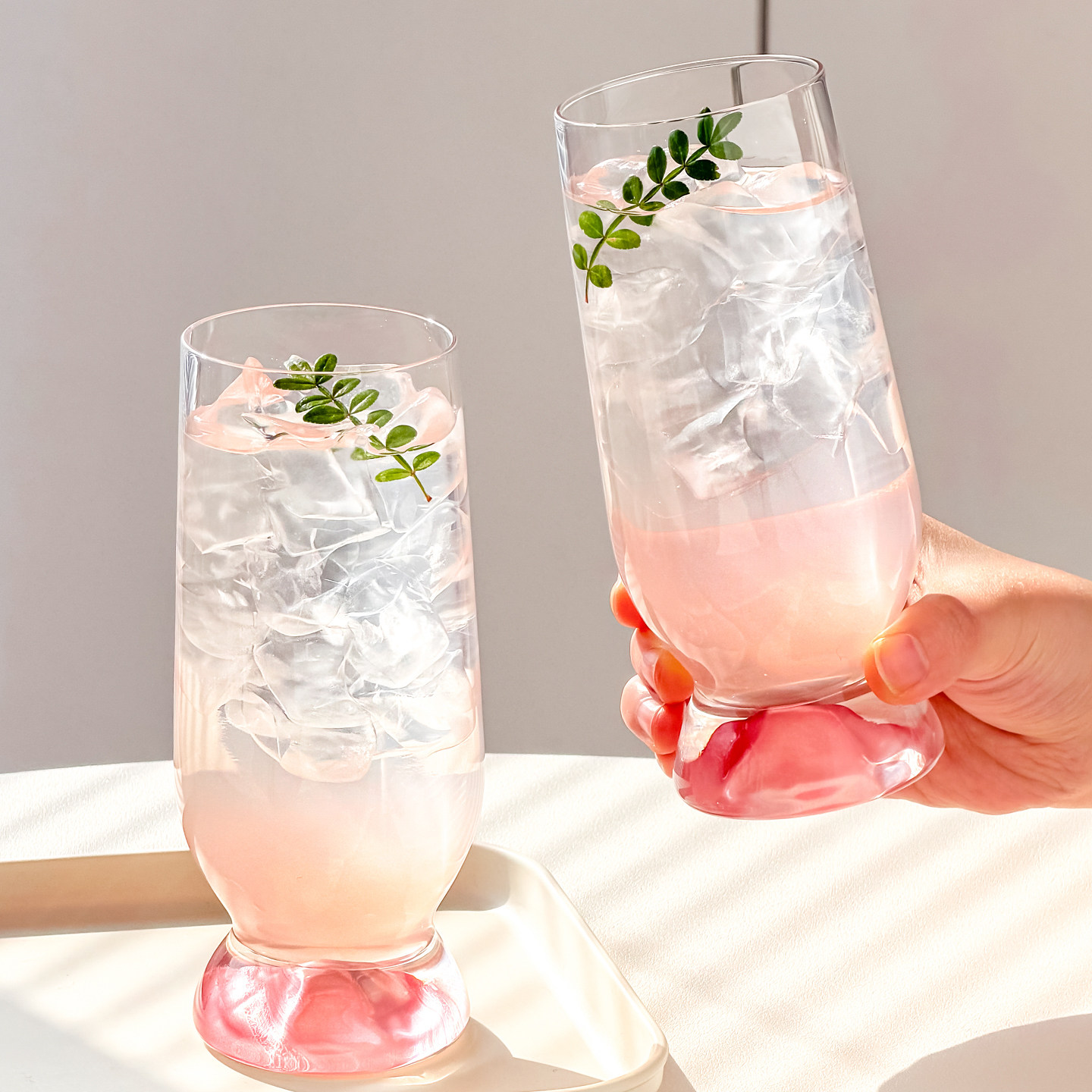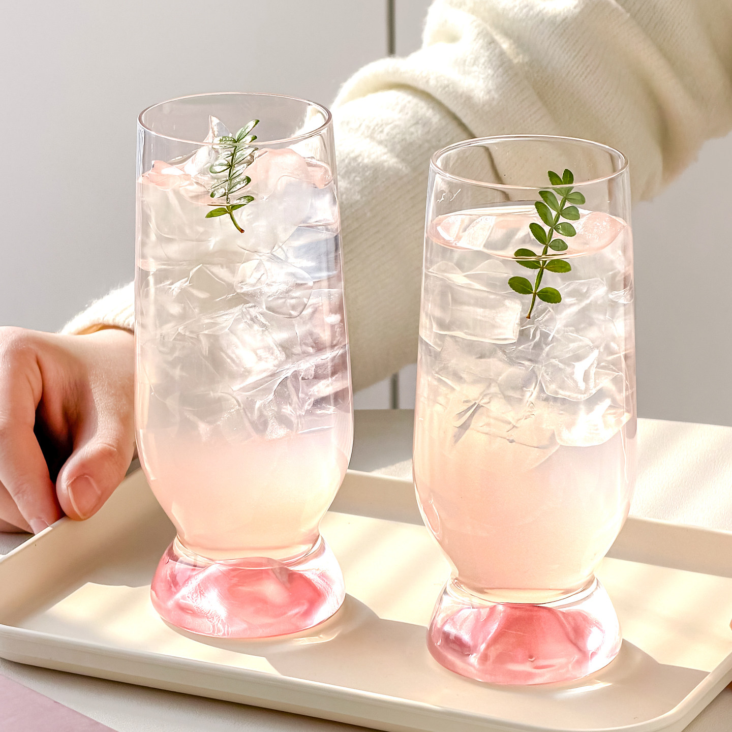 川岛屋粉色玻璃杯子高级感轻奢高颜值家用女生水杯果汁饮料啤酒杯