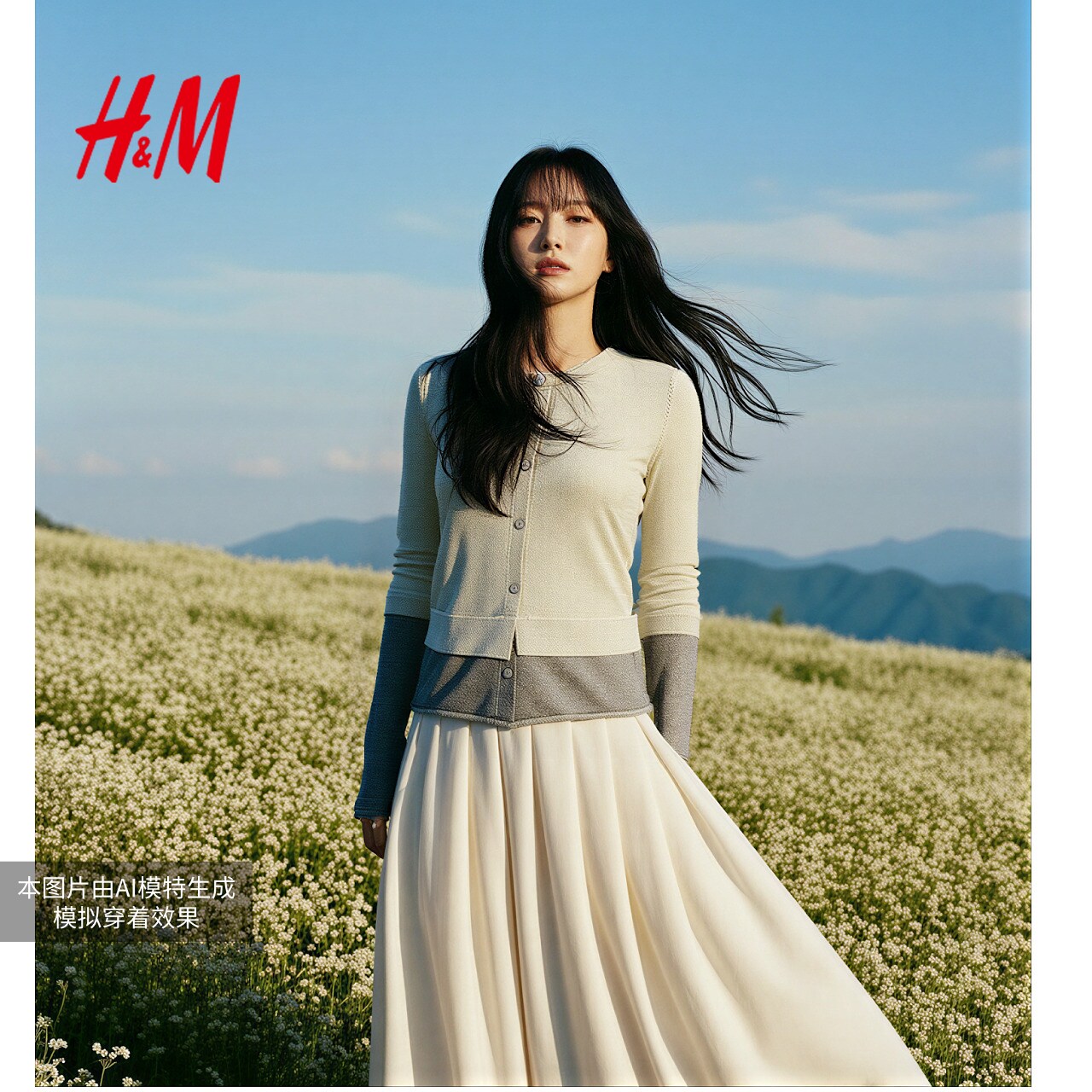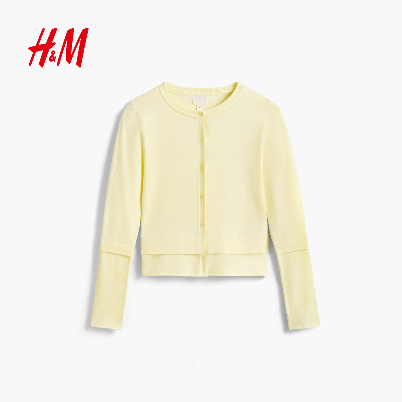 HM女装毛针织衫2026年新款软糯撞色配色下摆卷边毛衣开衫1000024
