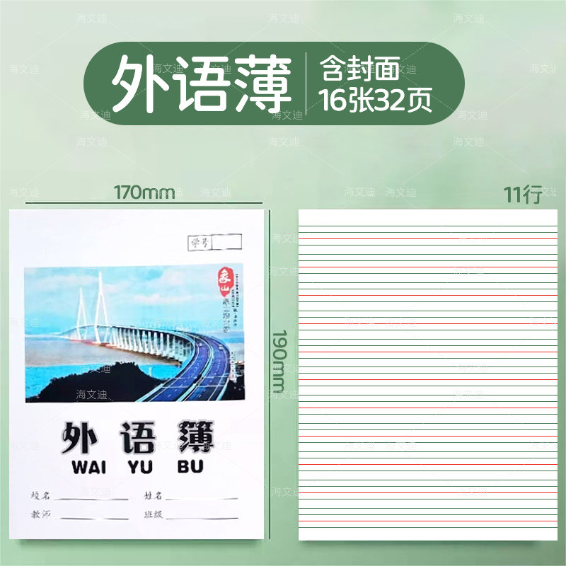 浙江宁波象山县外语英语薄小学生统一作业本练习薄田字课堂笔记图画作文三线数学作文方格练习拼田音本