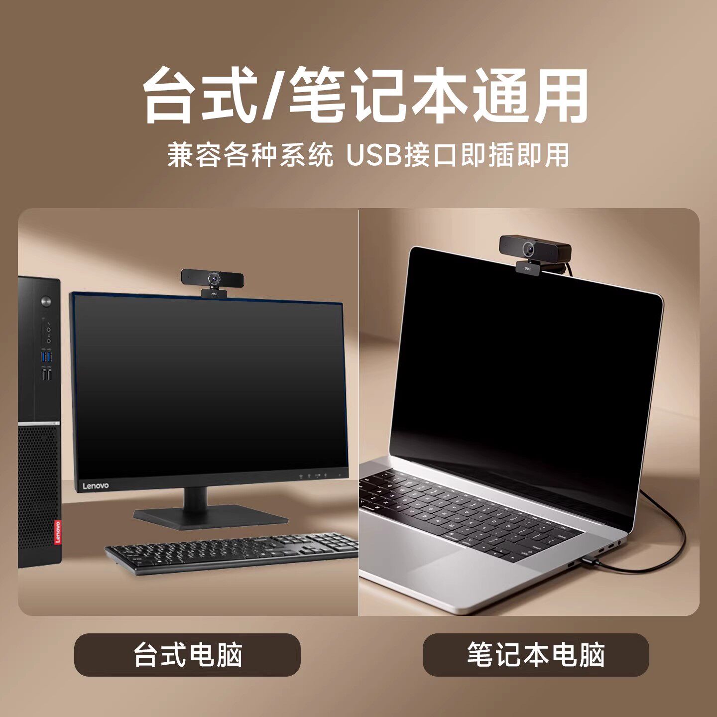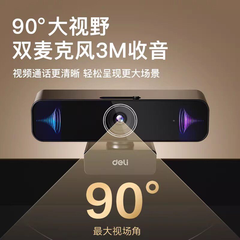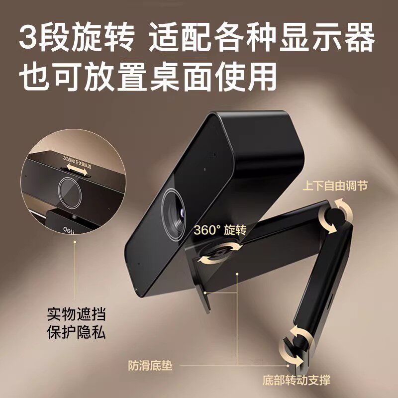 得力台式电脑摄像头麦克风音响三合一高清4k笔记本外接摄像头USB接口网课视频会议专用自动对焦摄像头
