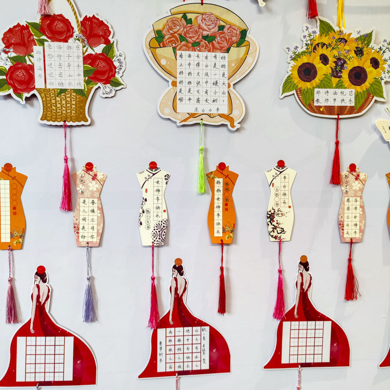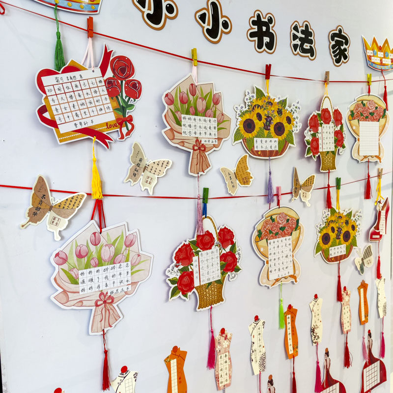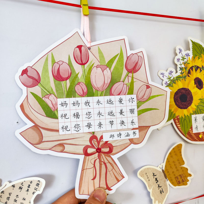 母亲节贺卡创意硬笔书法作品展示挂件幼儿园儿童小学生手写diy古诗词练字纸送女神老师妈妈鲜花束感恩祝福卡