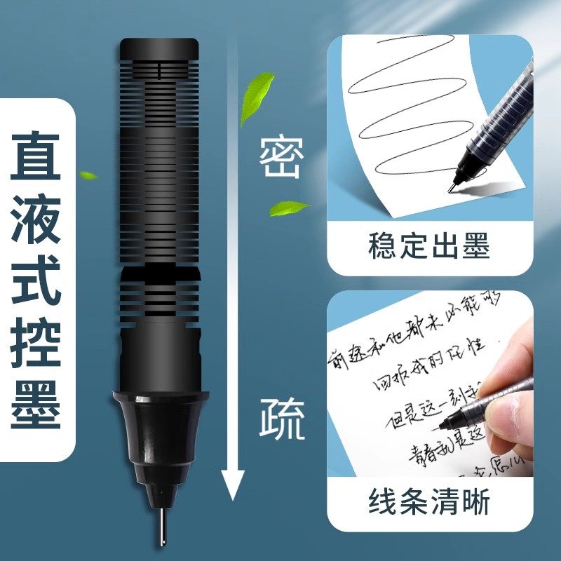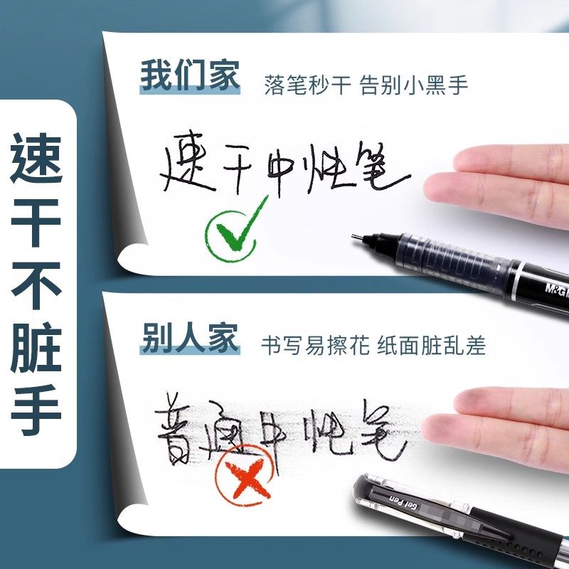 晨光直液式中性笔黑色走珠笔【12支】速干学生用水笔0.5考试专用水性直液笔签字笔红笔刷题作业神器碳素黑笔