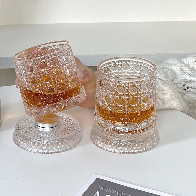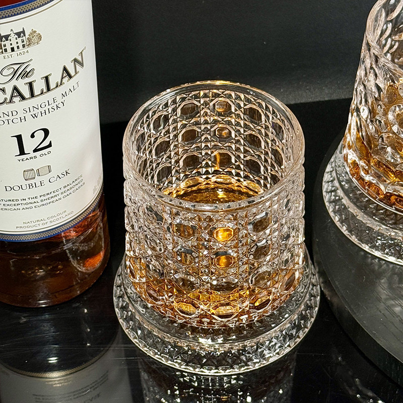 轻奢高档威士忌洋酒杯古典旋转水晶玻璃杯高级感网红白兰地啤酒具