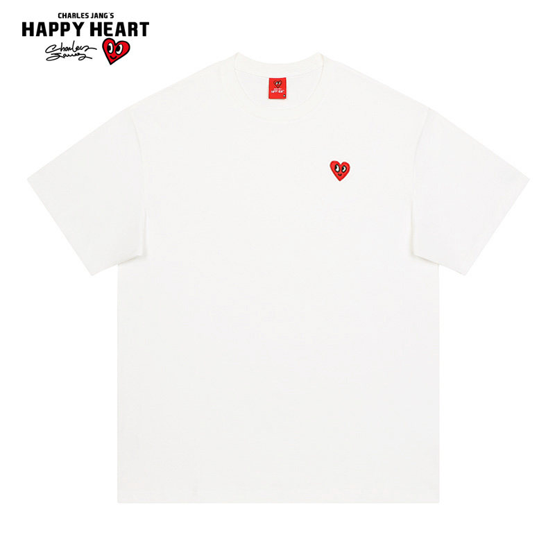 查尔斯桃心 夏260g纯棉爱心刺绣宽松百搭短袖t恤