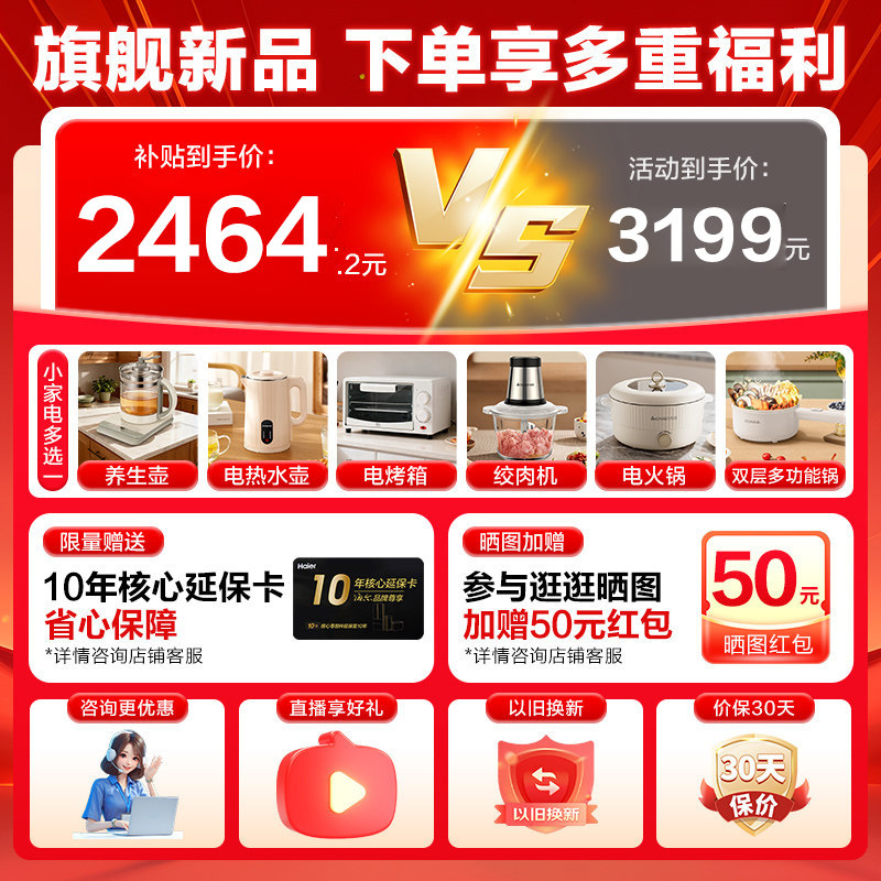 以旧换新]海尔云溪4.0波轮洗衣机家用11KG大容量双动力防缠绕补贴