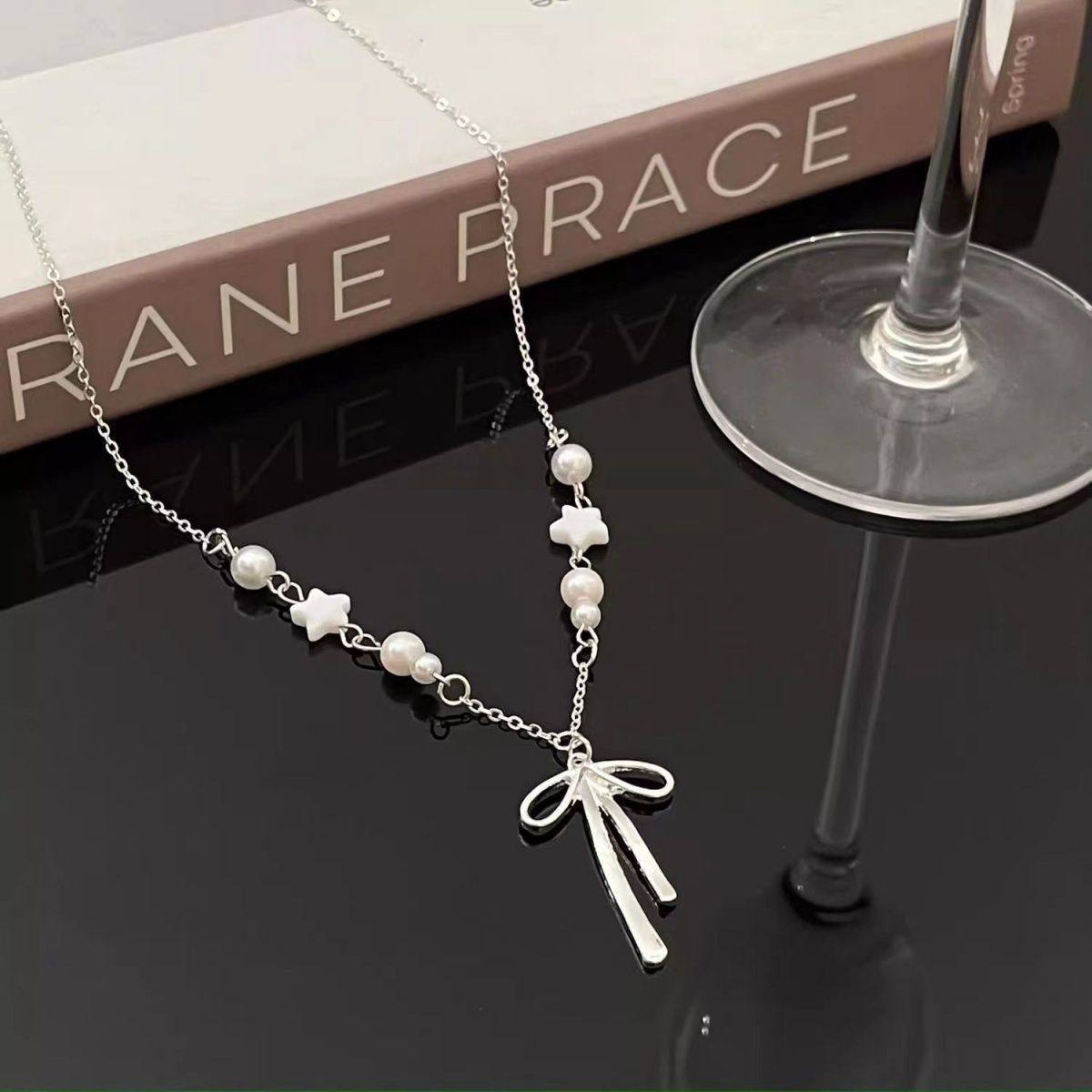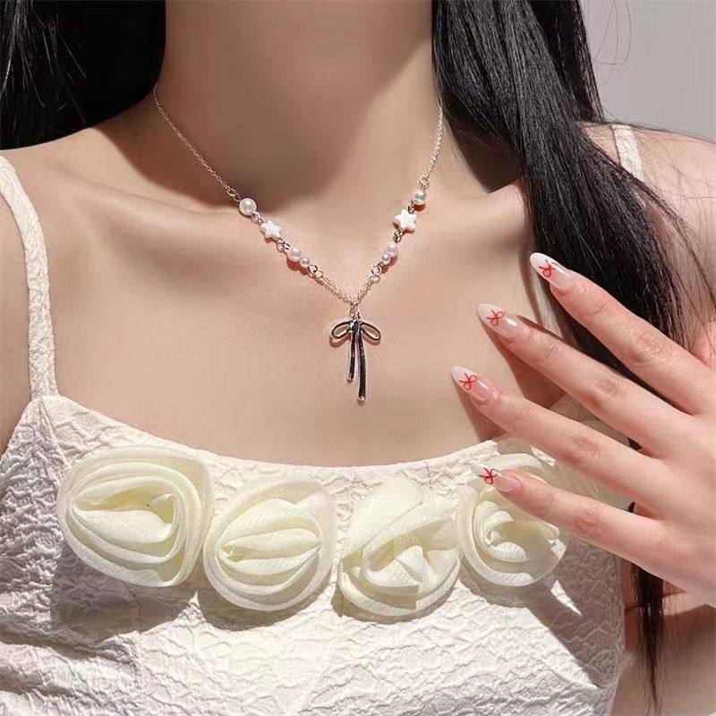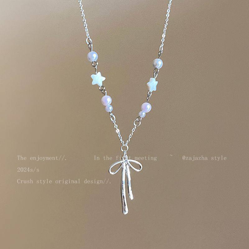 甜美珍珠蝴蝶结星星项链女款小众设计感配饰夏天海边配裙子锁骨链