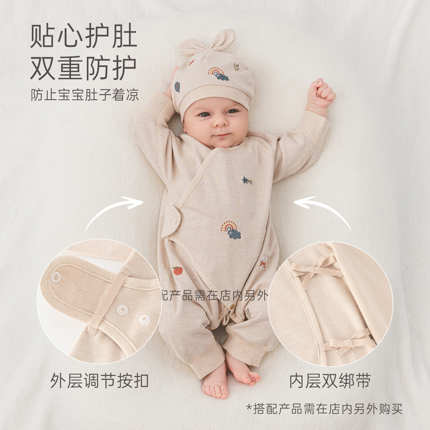 木生棉 新生儿长袖绑带连体衣春秋季宝宝纯棉哈衣初生婴儿和尚服