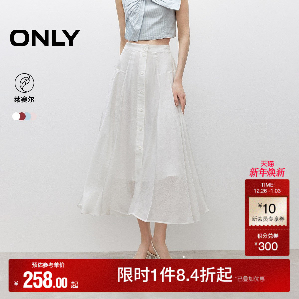 ONLY2025秋冬新款浪漫花卉肌理高腰飘逸灵动显瘦中长裙半身裙女