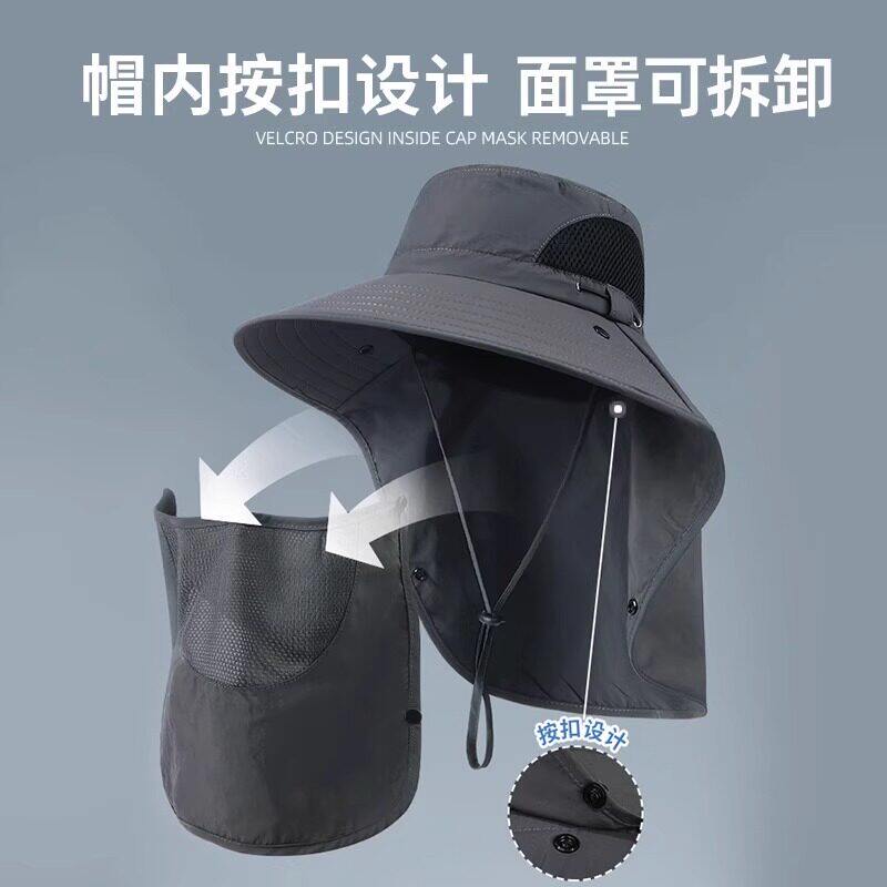帽子男夏季大帽檐钓鱼帽防紫外线渔夫帽女防晒遮阳户外太阳帽凉帽