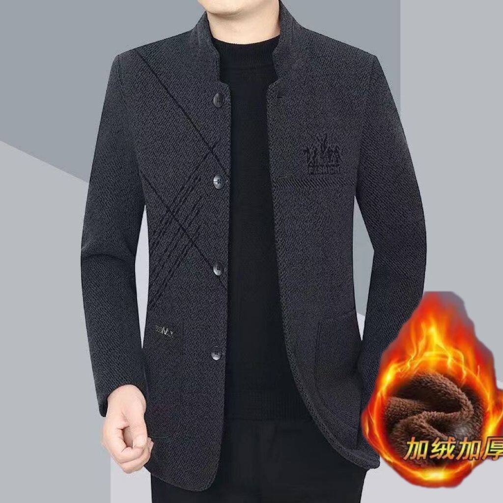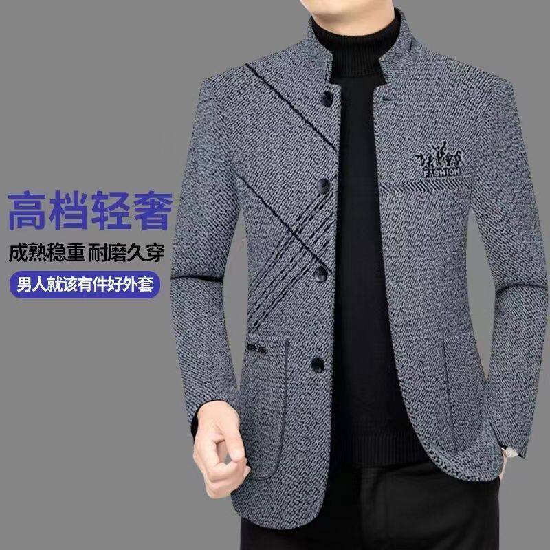 25年新款男士毛呢大衣外套高档休闲立领上衣时尚大气老年爸爸装