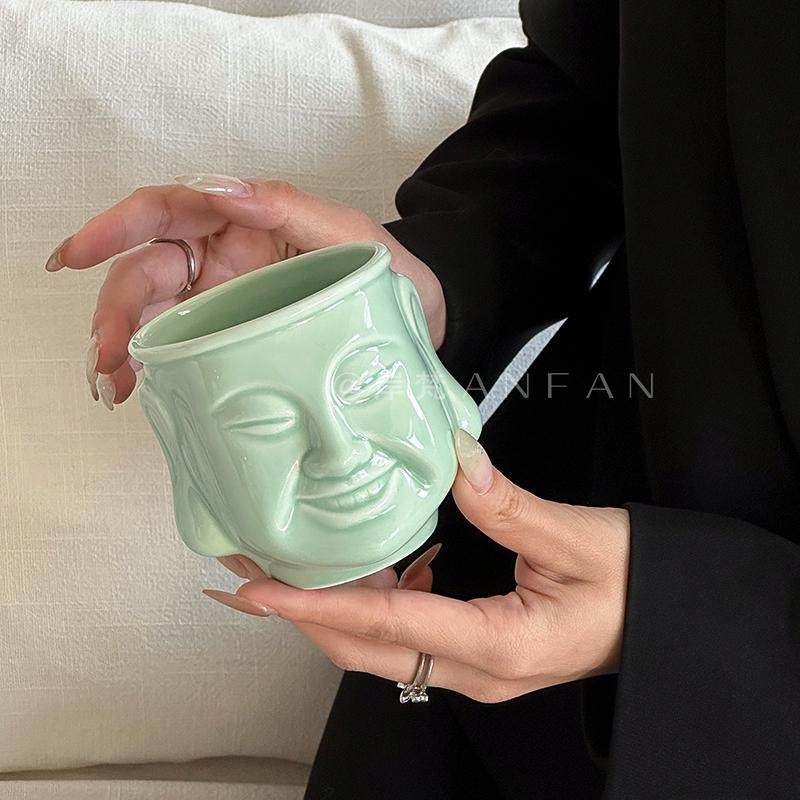 创意玉佛杯马克杯家用简约办公室情侣水杯咖啡杯搞怪陶瓷杯伴手礼