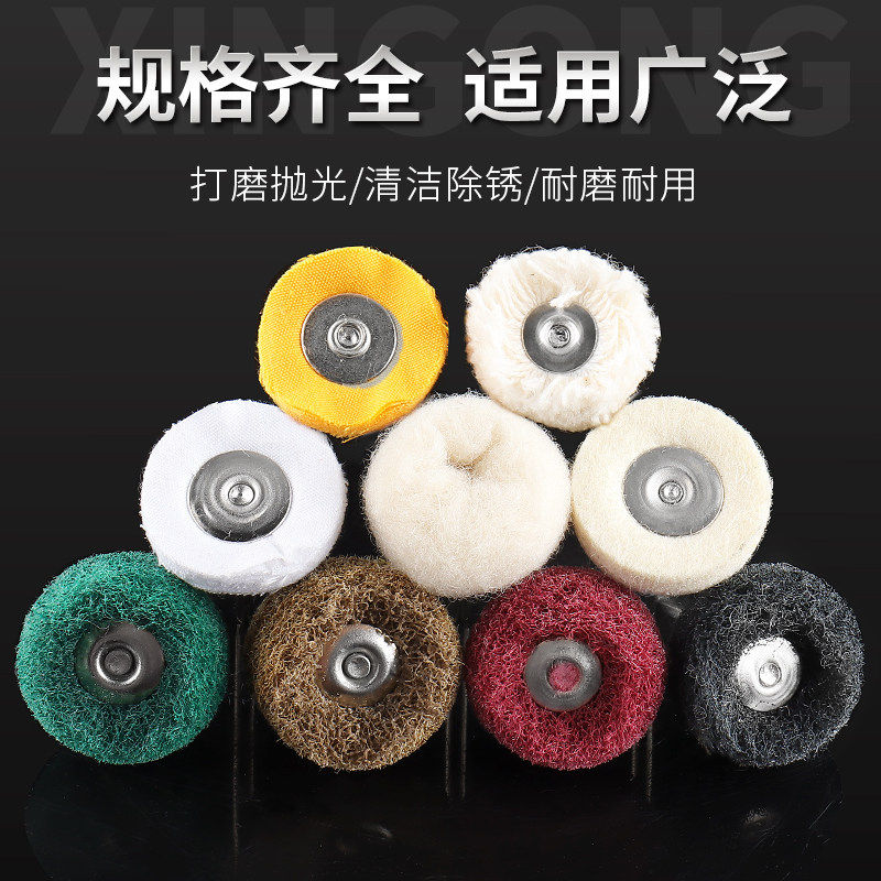 T型羊毛抛光轮与百洁布磨头电磨机专用镜面打磨配件电动金属