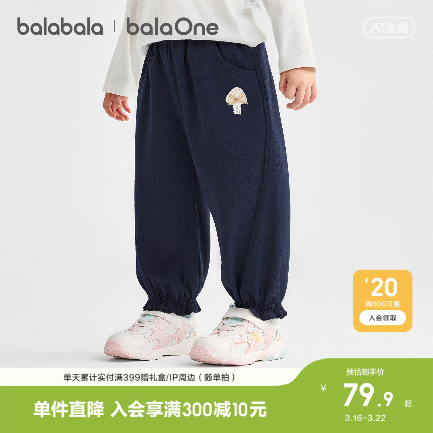 巴拉巴拉童装儿童裤子女童2026新款春秋装运动婴儿宝宝束脚休闲裤