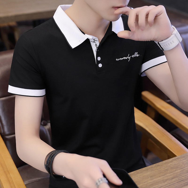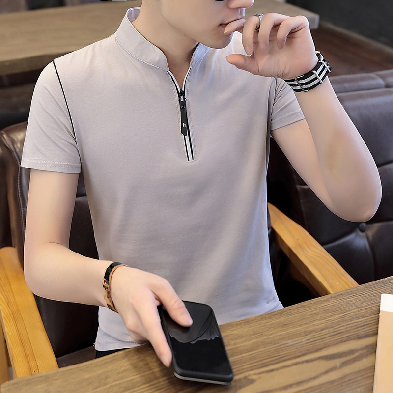 夏季男装短袖t恤男polo衫韩版潮流潮牌修身冰丝体恤立领半袖衣服