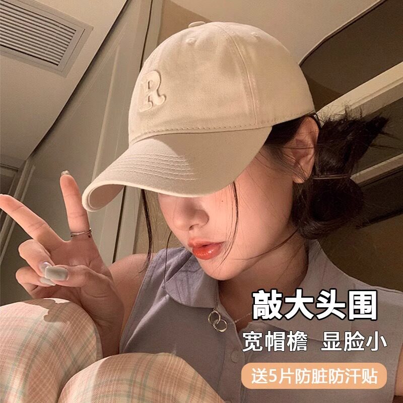 美式复古字母灰色棒球帽女高级感宽檐大头围显脸小百搭鸭舌帽子男