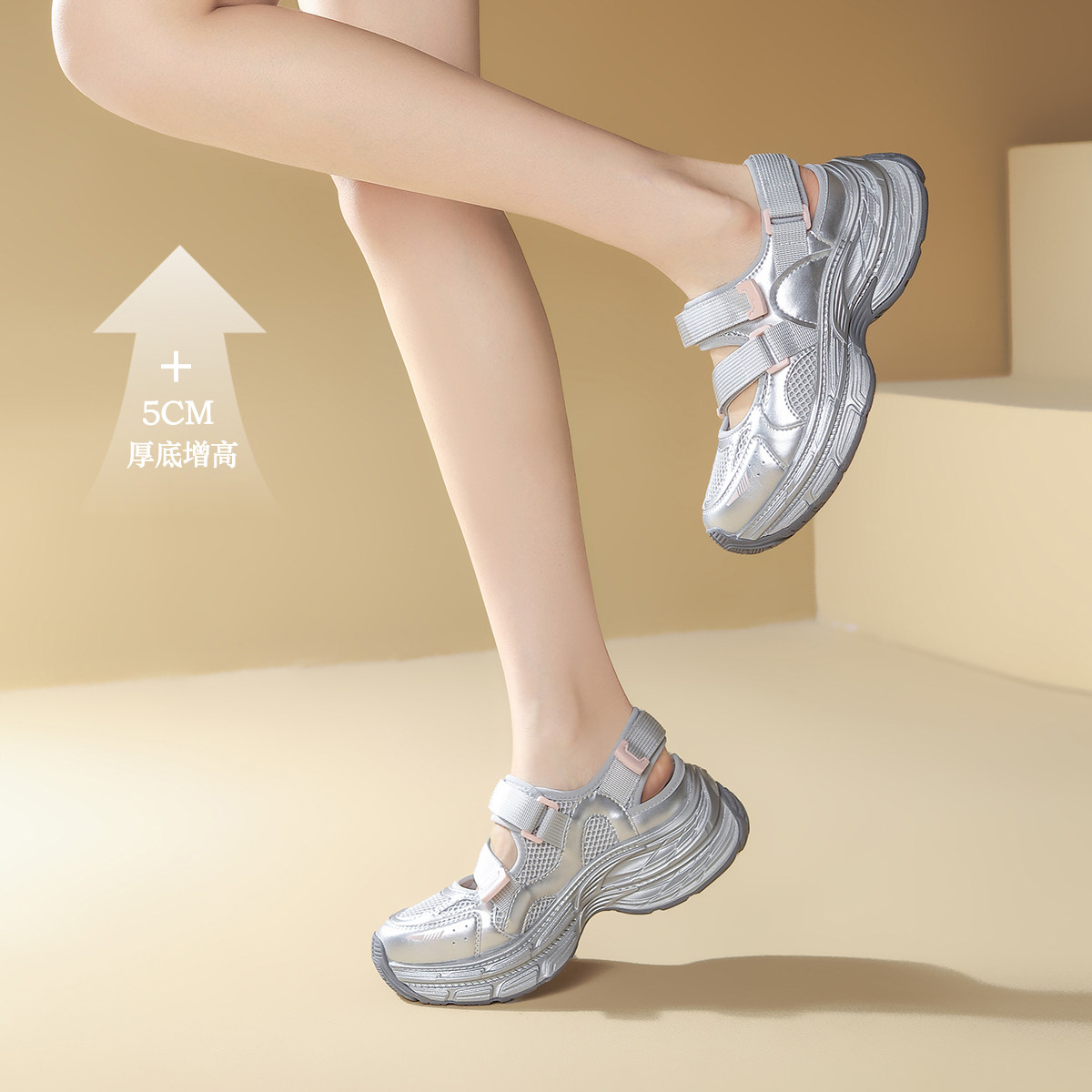 哈森厚底增高镂空运动凉鞋女鞋子2026夏季夏款爆款透气运动休闲鞋