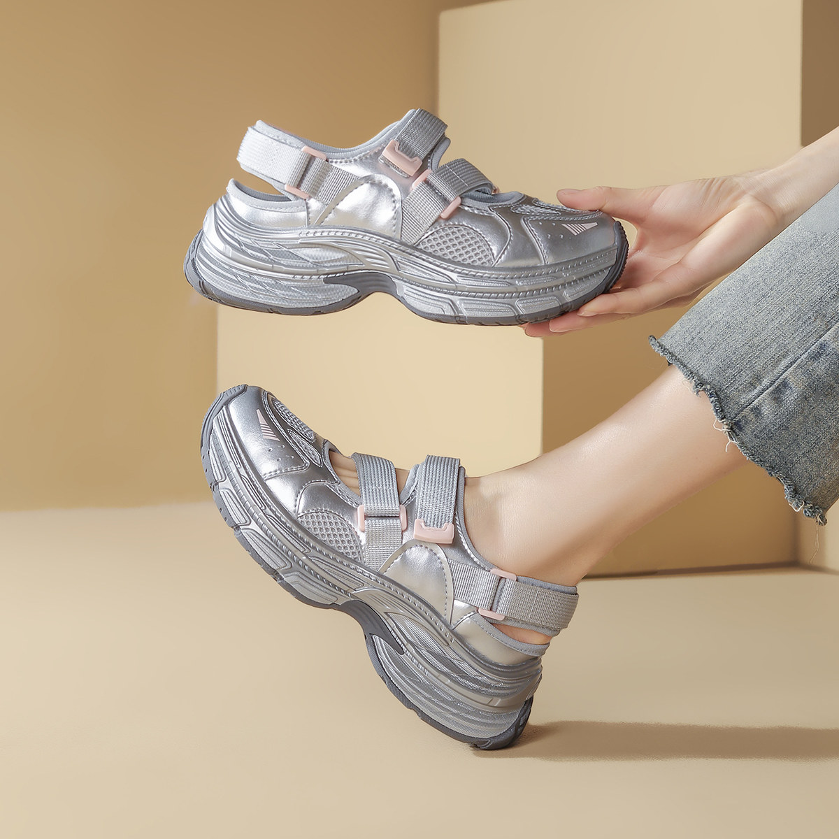 星期六厚底增高运动凉鞋女款新款夏季小香风魔术贴亮片沙滩鞋