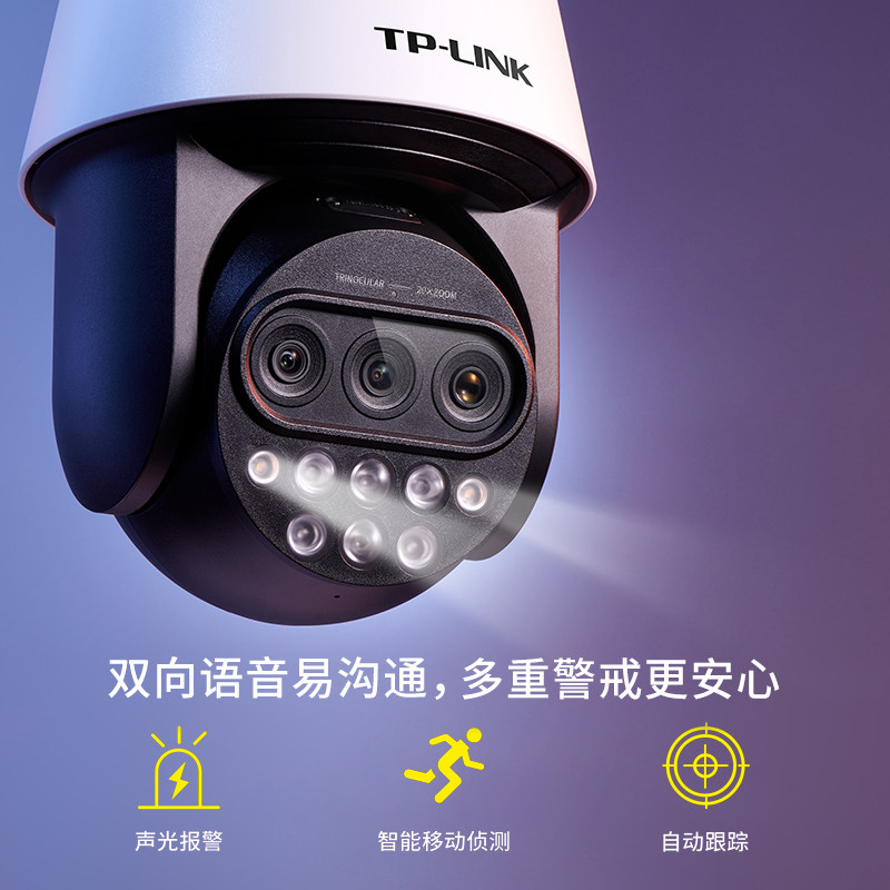 普联TP-LINK摄影头三目变焦网络高速球机手机远程监控器室外高清PoE供电监控摄像头TL-IPC5420X三目变焦版