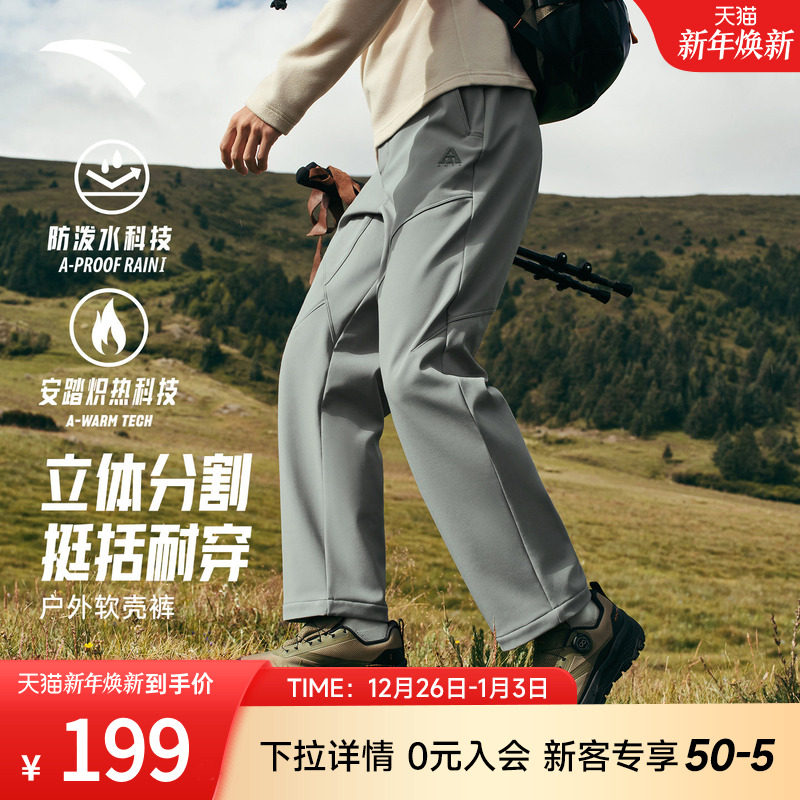 安踏软壳弯刀长裤男裤防风加绒防泼水直筒休闲裤户外徒步登山裤子