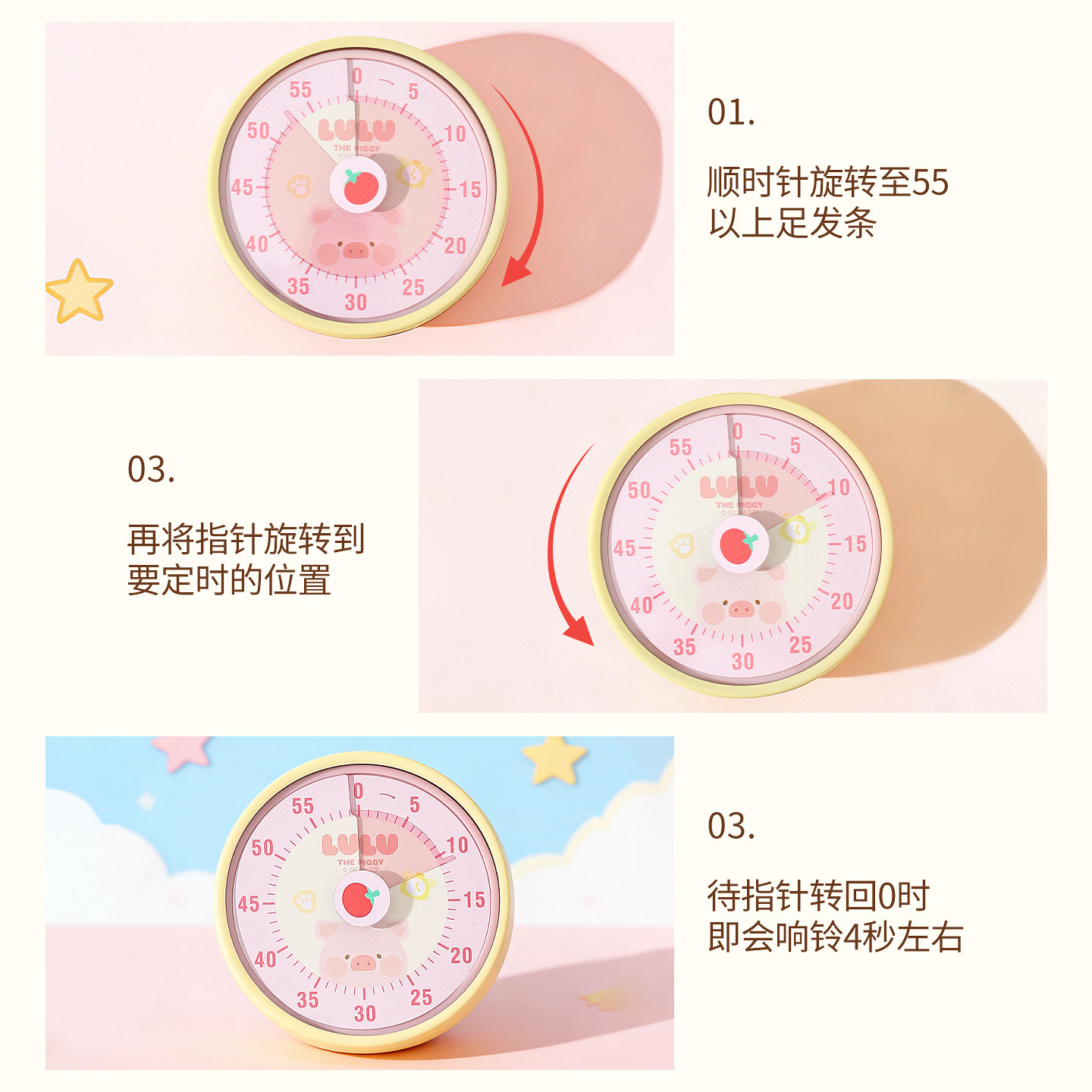 川岛屋&lulu猪联名 机械磁吸计时器厨房提醒器学生自律专用定时器