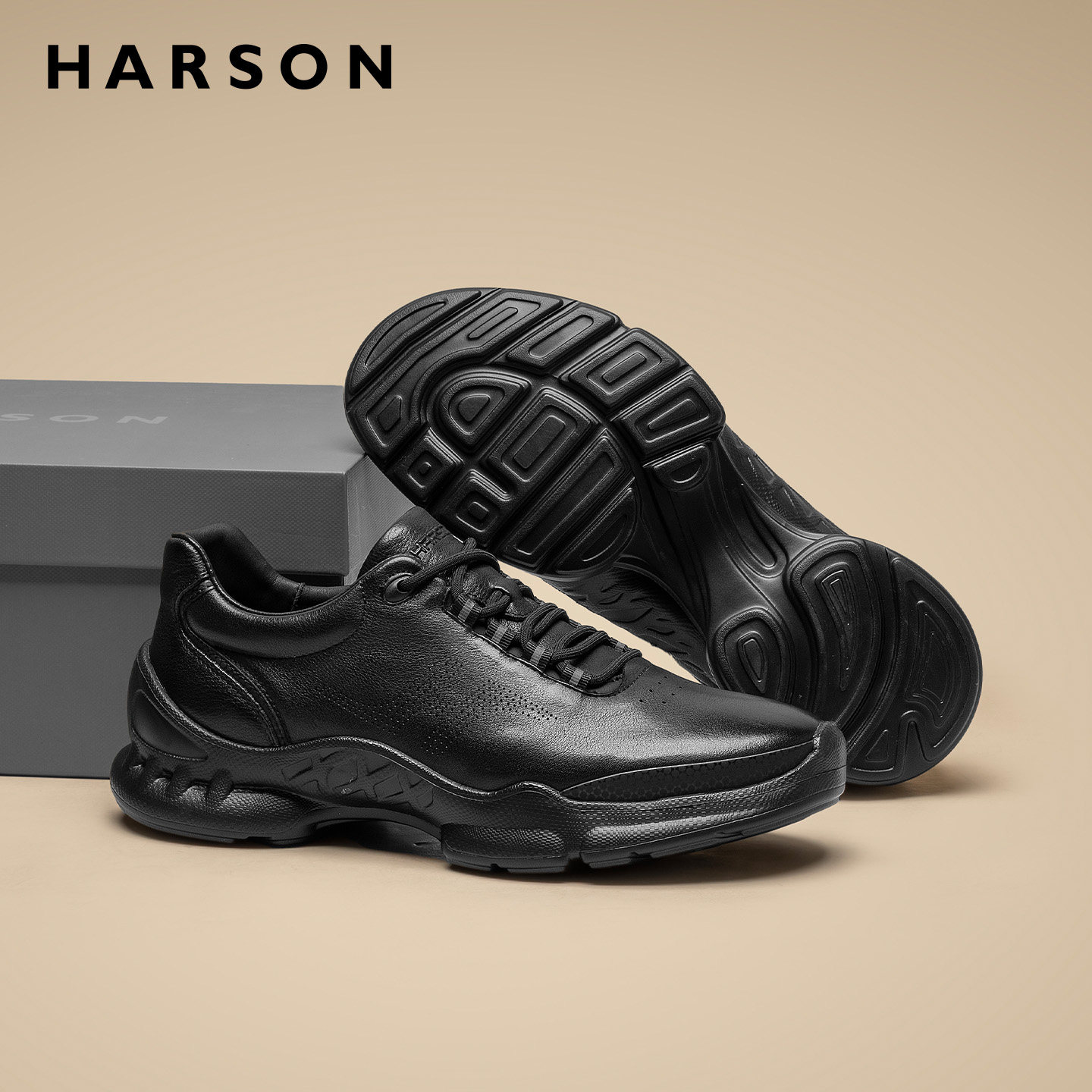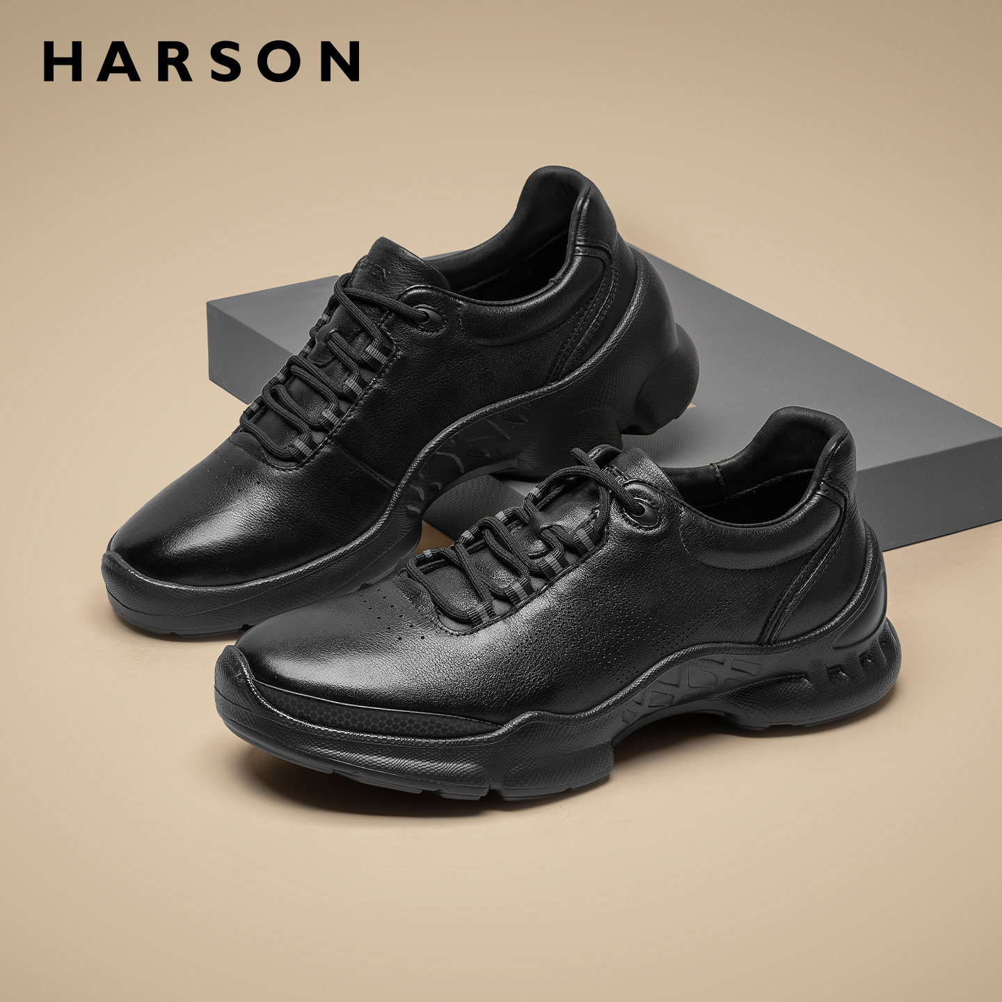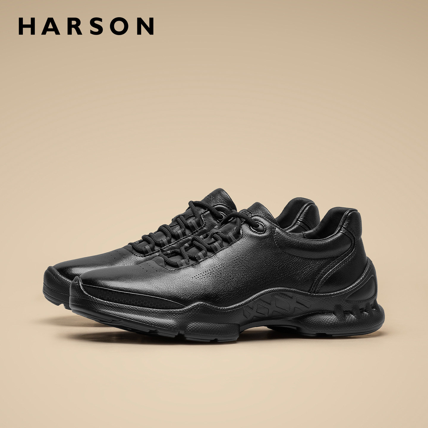哈森男鞋春季软底男士皮鞋商务休闲鞋低帮真皮全黑公务鞋通勤鞋子
