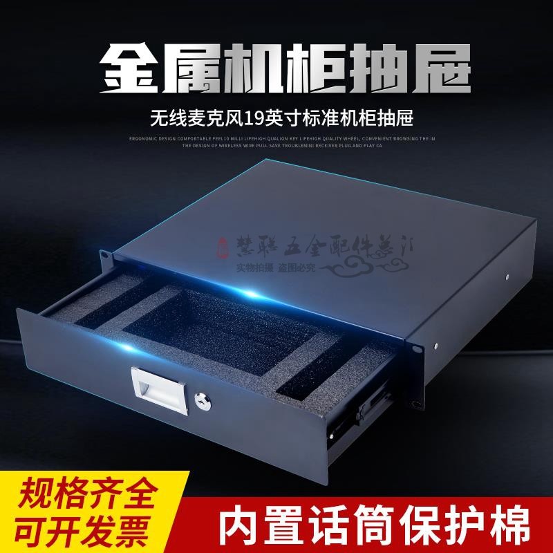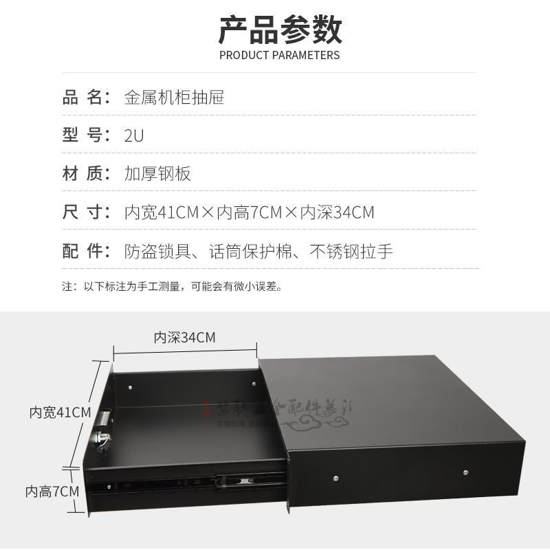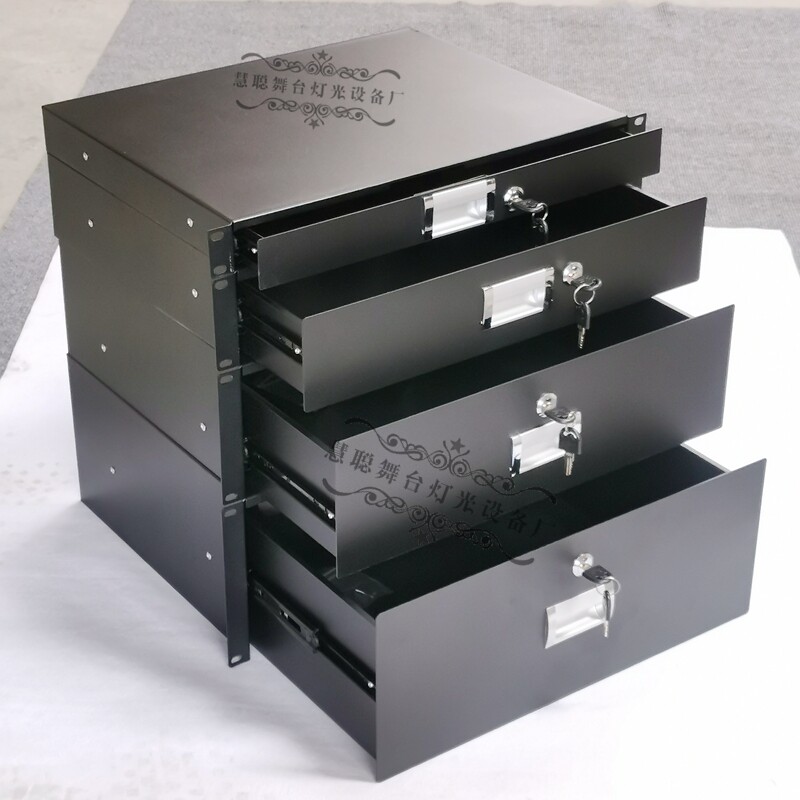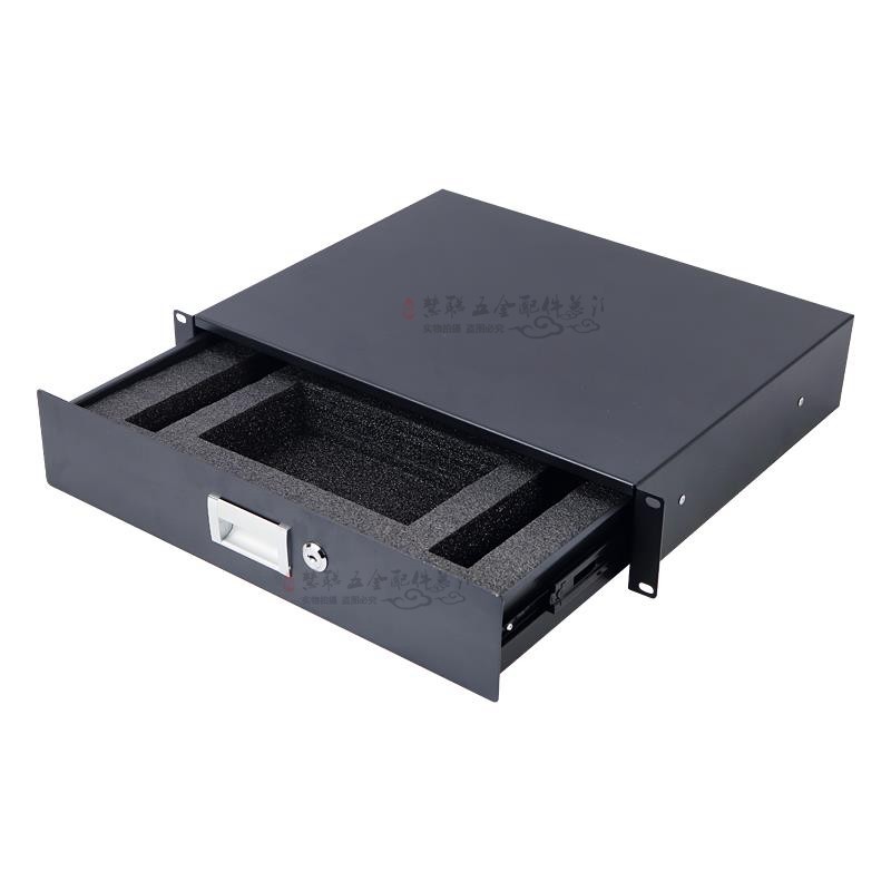 厂家定做航空箱配件2U标准机柜铁抽屉音响话筒功放收纳盒现货秒发