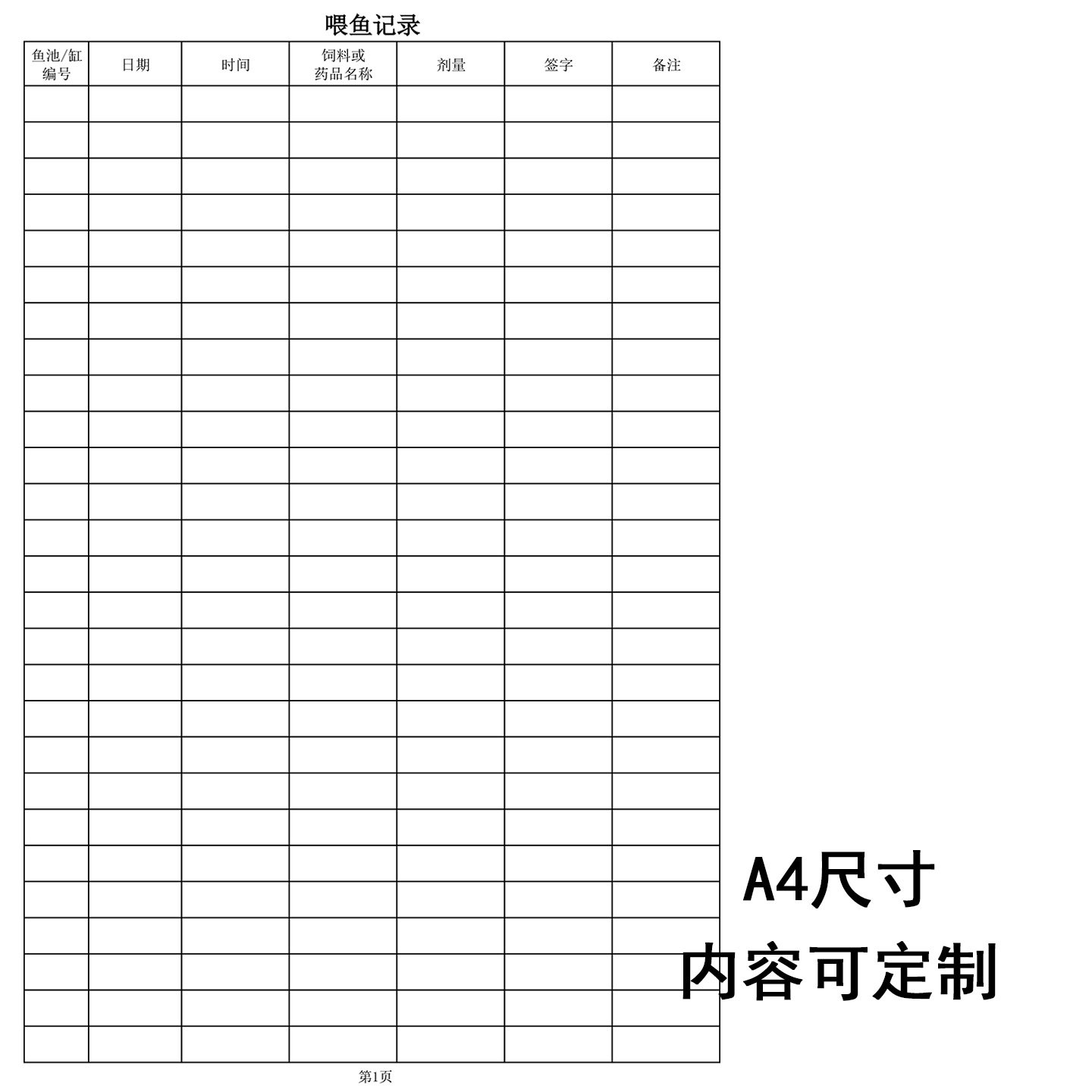 喂鱼记录表鱼缸鱼池鱼塘自养殖养鱼观赏鱼每日喂食饲料剂量登记本