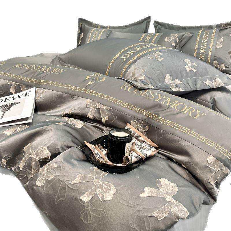 2025新款春夏季金丝提花浮雕水洗丝滑床上四件套冰丝床单被套床笠