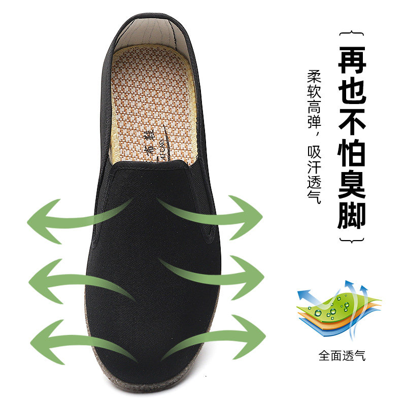 老北京布鞋男款夏季舒适牛筋底软底休闲防滑一脚蹬开车鞋黑布鞋男