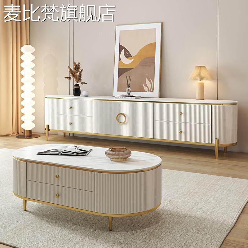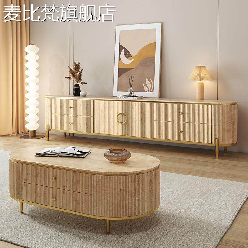 麦比梵实木电视机柜轻奢北欧现代简约小户型客厅2023新款茶几电视柜组合摆件饰品床笠拉车